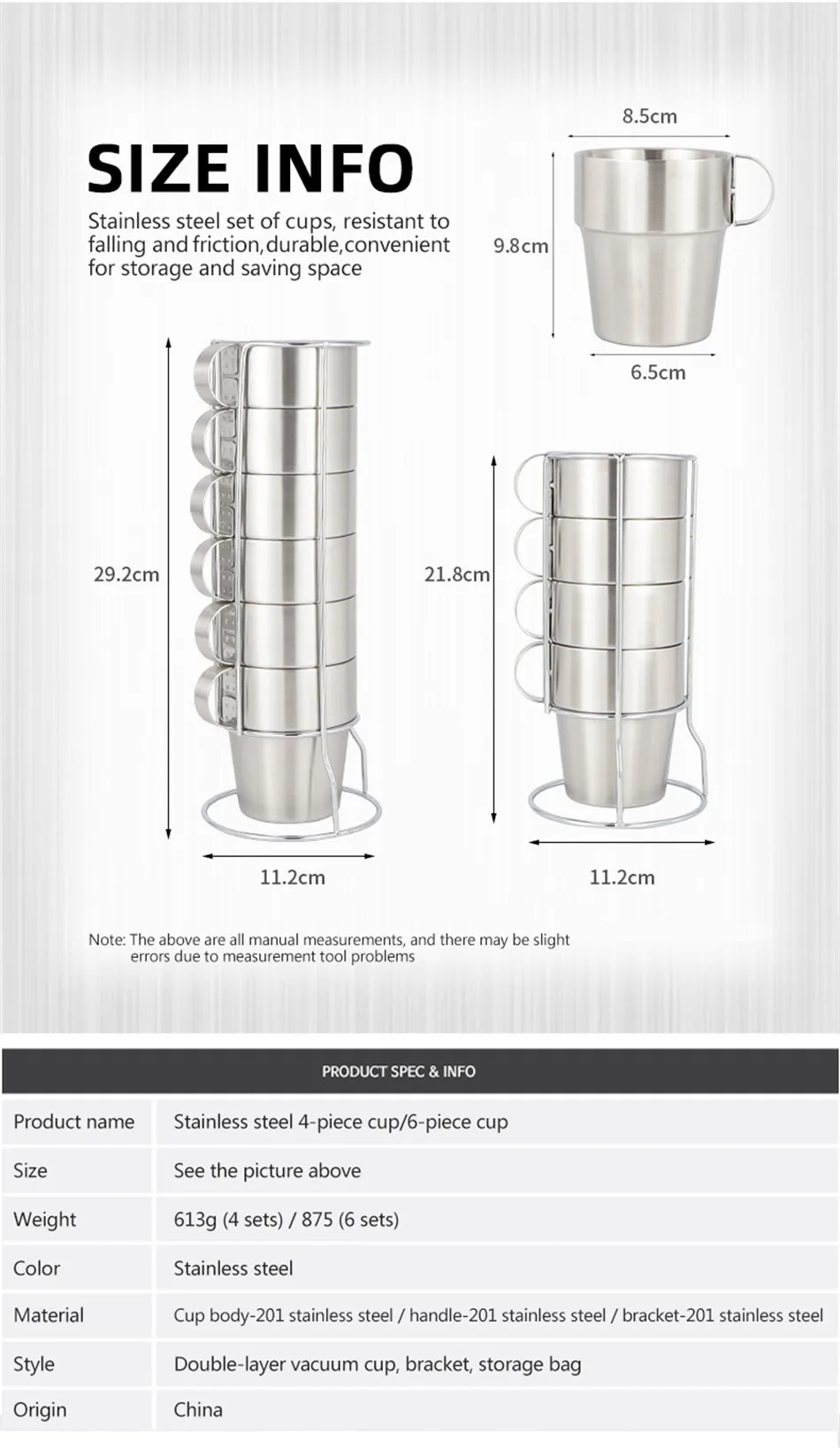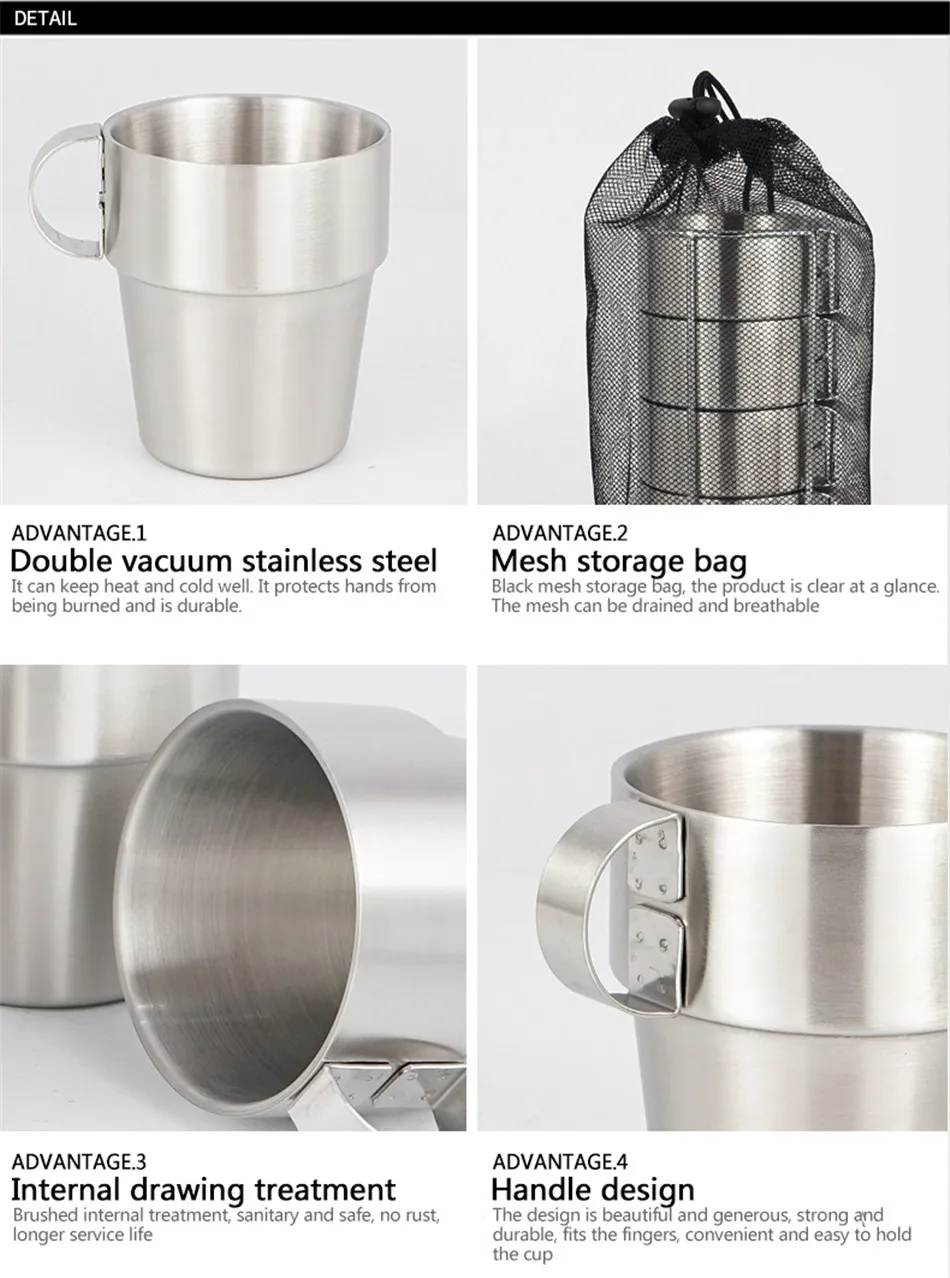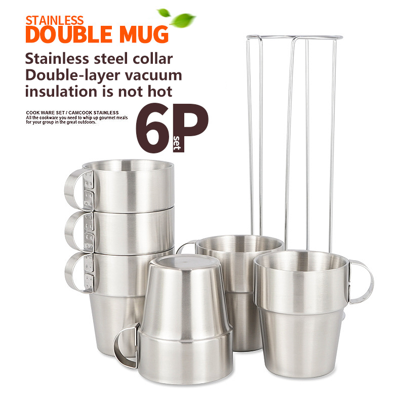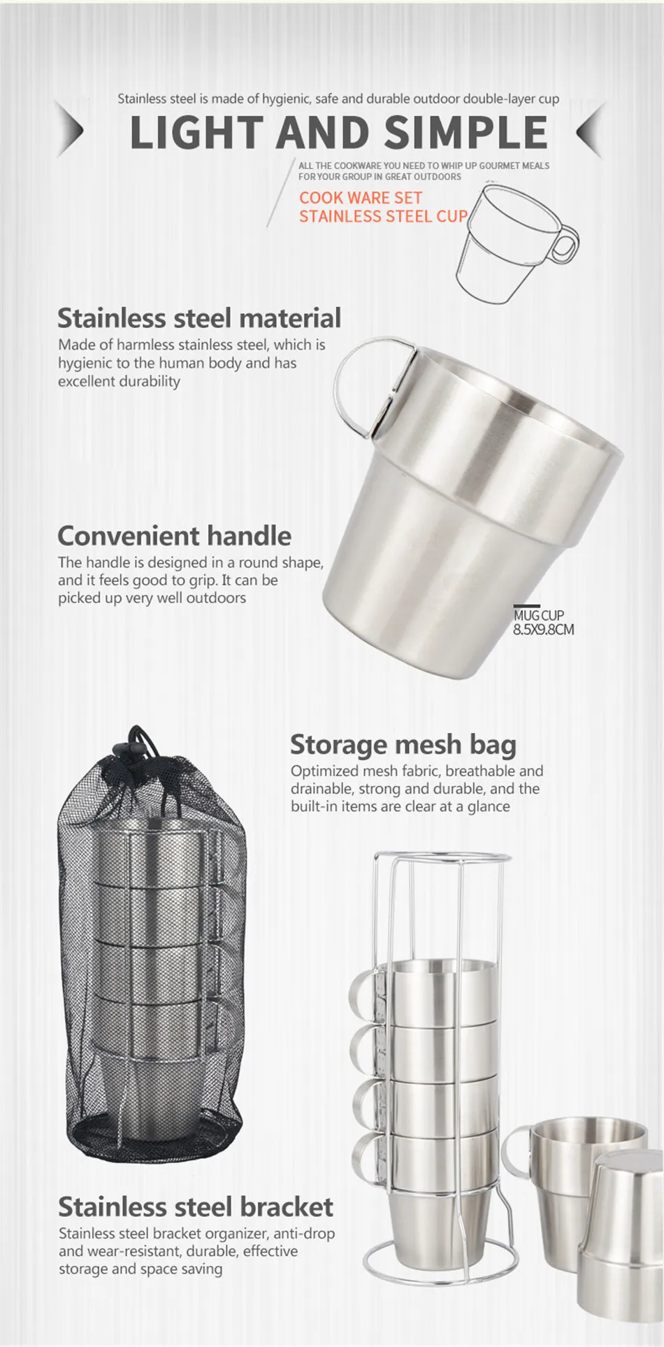 Outdoor Camping Non-magnetic 6P set of Stainless Steel Thermal Insulation Anti-scalding Coffee Cup Picnic Cup Double Insulation