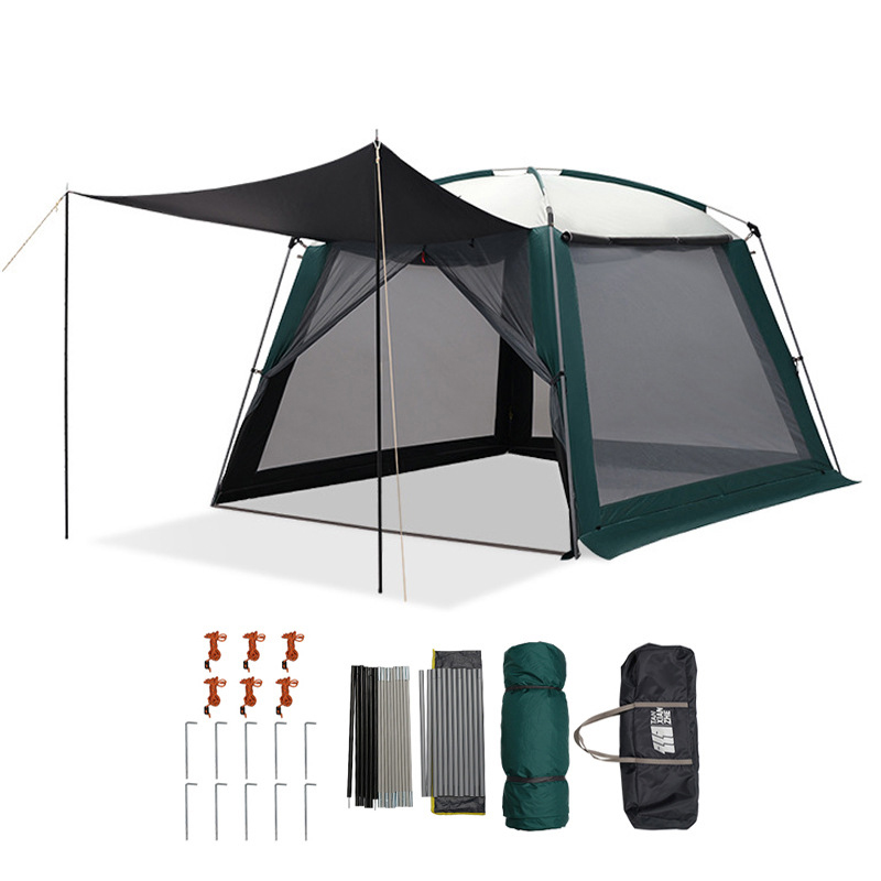 Outdoor Canopy Awning 5-8 Person Black Coating Awning Plus Rainproof And Sunscreen Mesh Breathable Large Canopy Tent