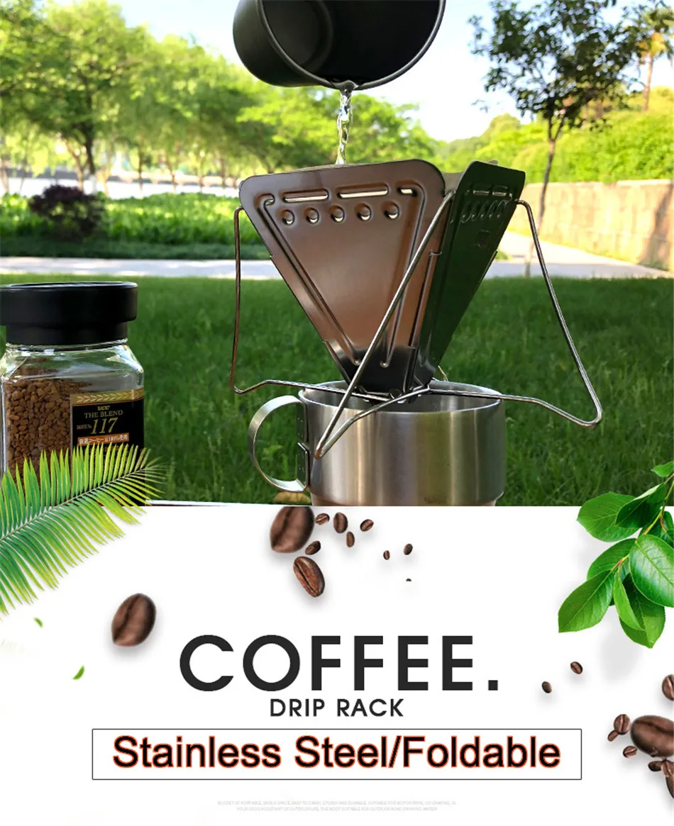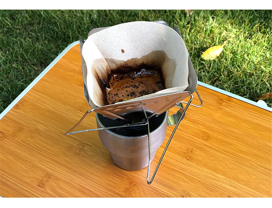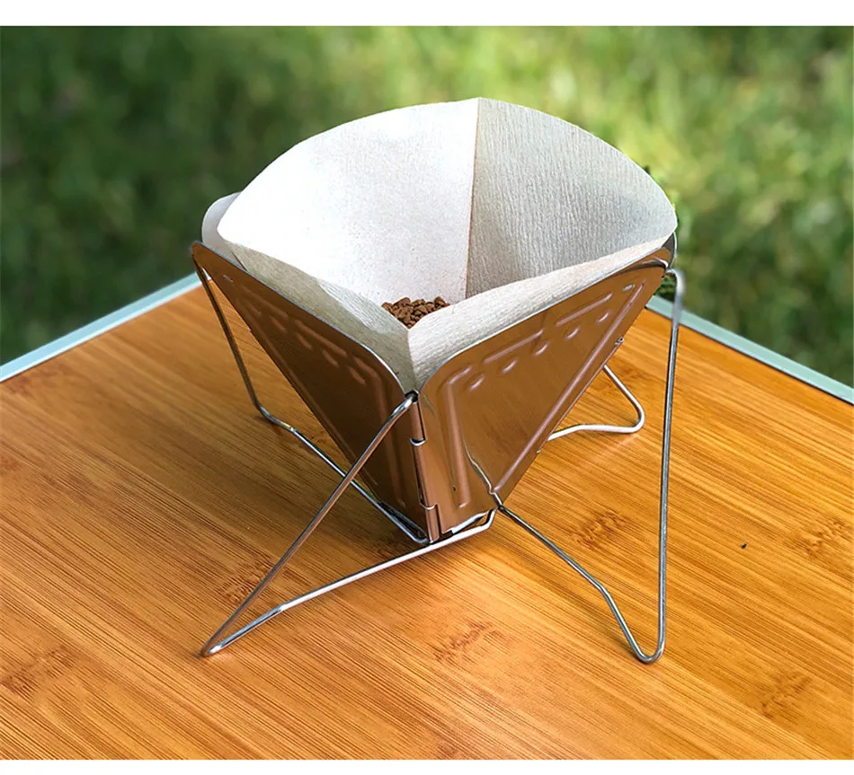 Outdoor Coffee Drip Rack Camping Portable Stainless Steel Foldable Funnel Filter Cup Coffee Ground Filter Camping Accessories
