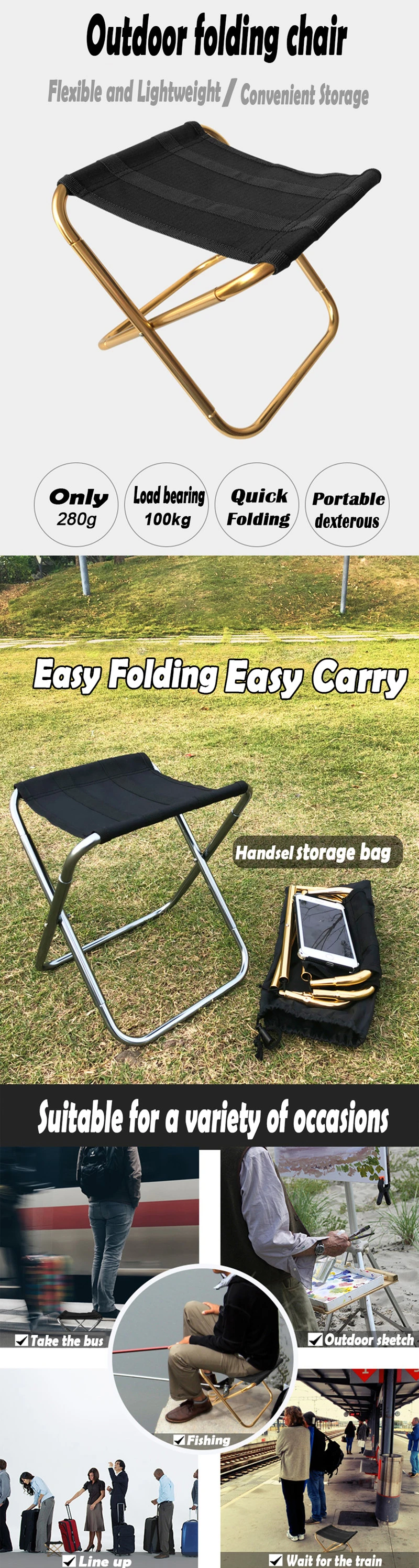 Outdoor Folding Stool Quality UltraLight Foldable Fishing Chair Picnic BBQ Camping Aluminum Alloy Chair Portable Seat Furniture