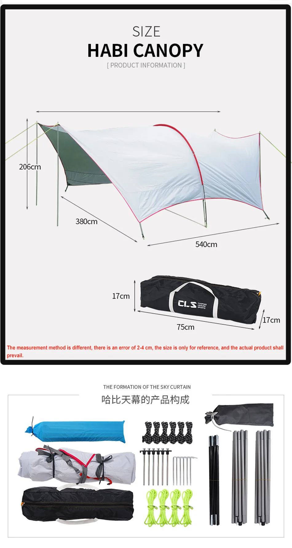 Outdoor HABI Canopy Camping Barbecue Multi-person Living Room Tent Awning Camping Large Rainproof Sunscreen Beach Pergola