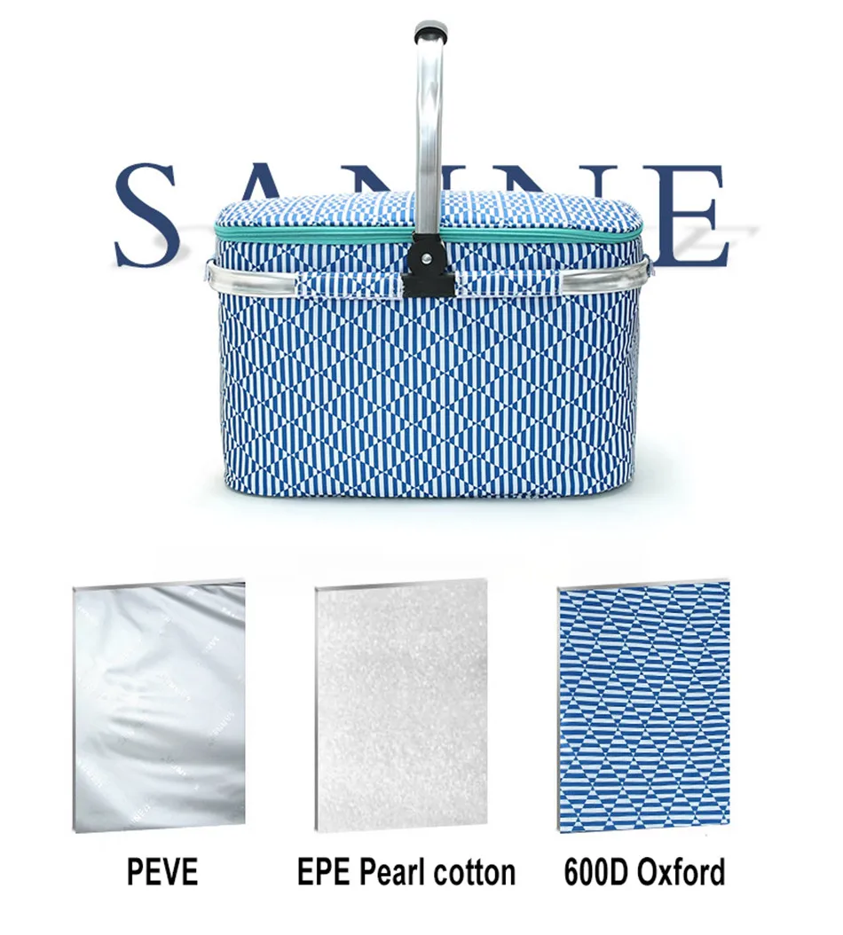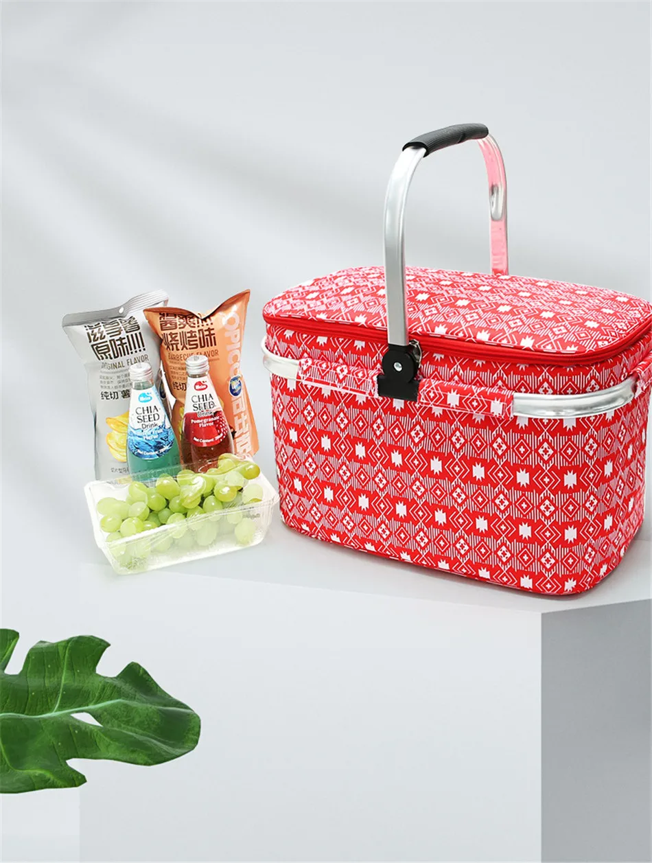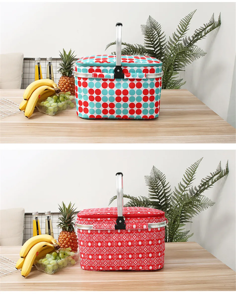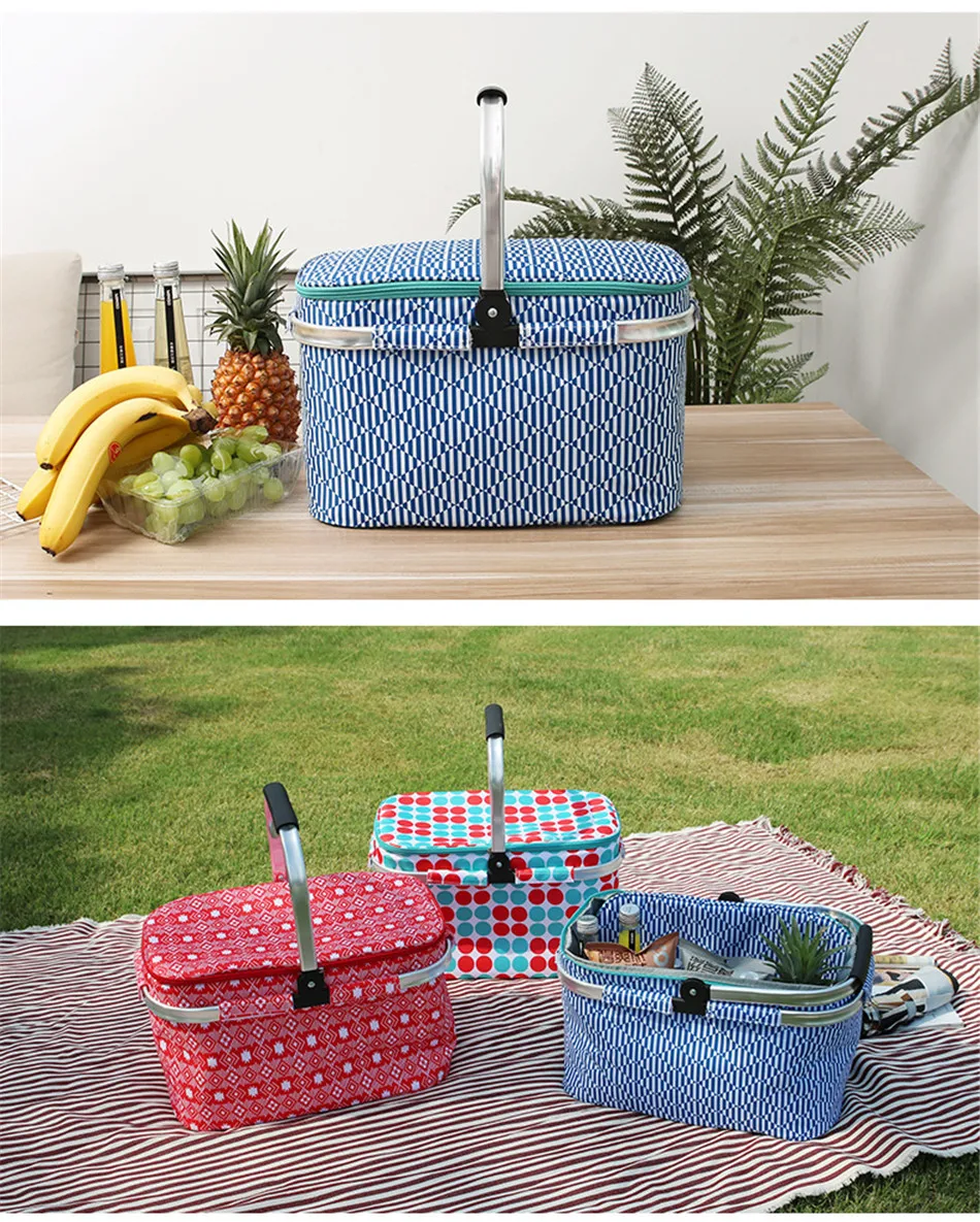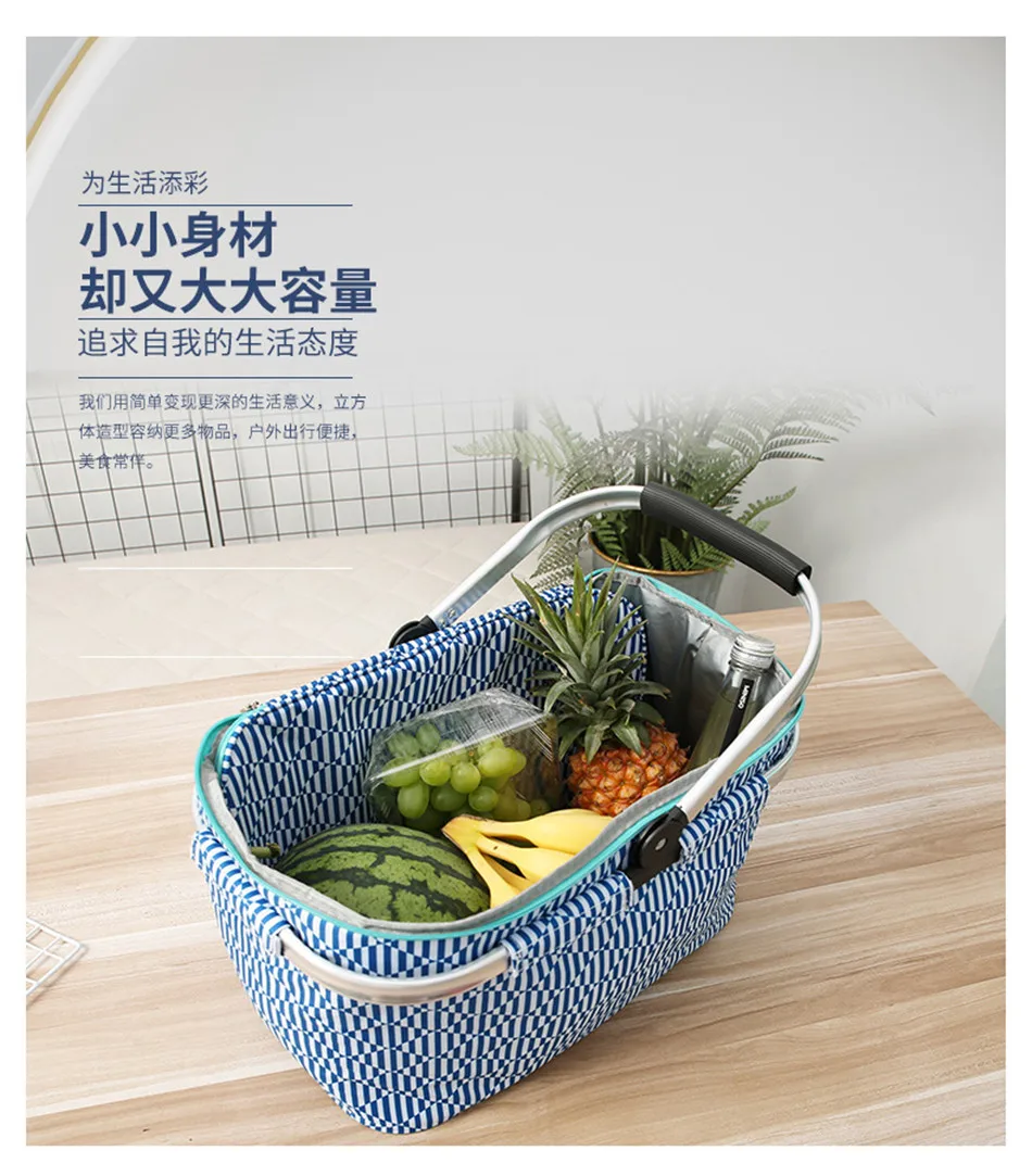 Outdoor Picnic Basket Large-Capacity Portable Lunch Bag Folding Oil Waterproof Double-layer Thermal Insulation Shopping Basket