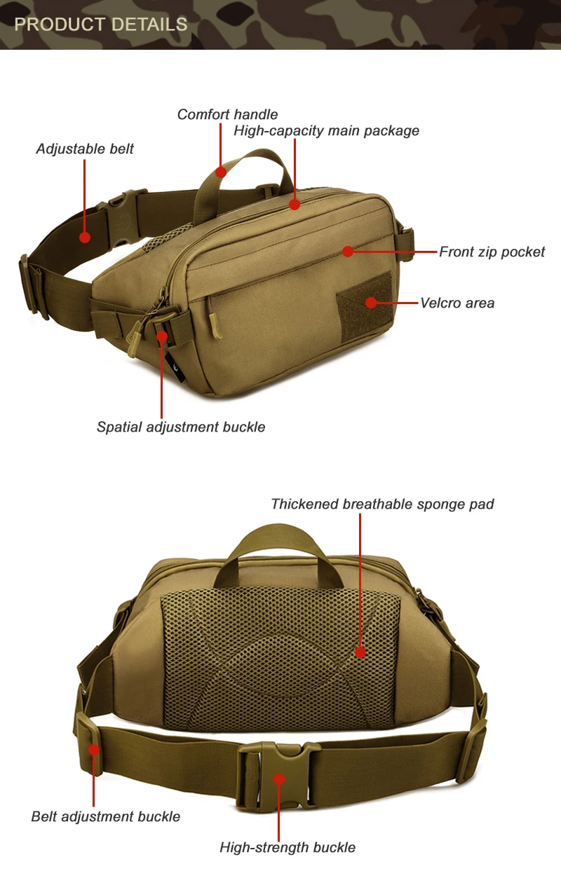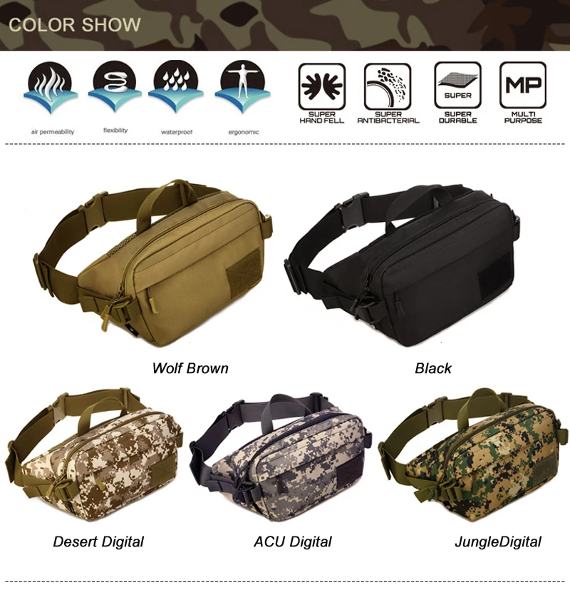 Outdoor Tactical Waist Bag Sports Military Camo Camping Shoulder Chest Bags Hiking Hunting Climbing Travel Crossbody Fanny Packs