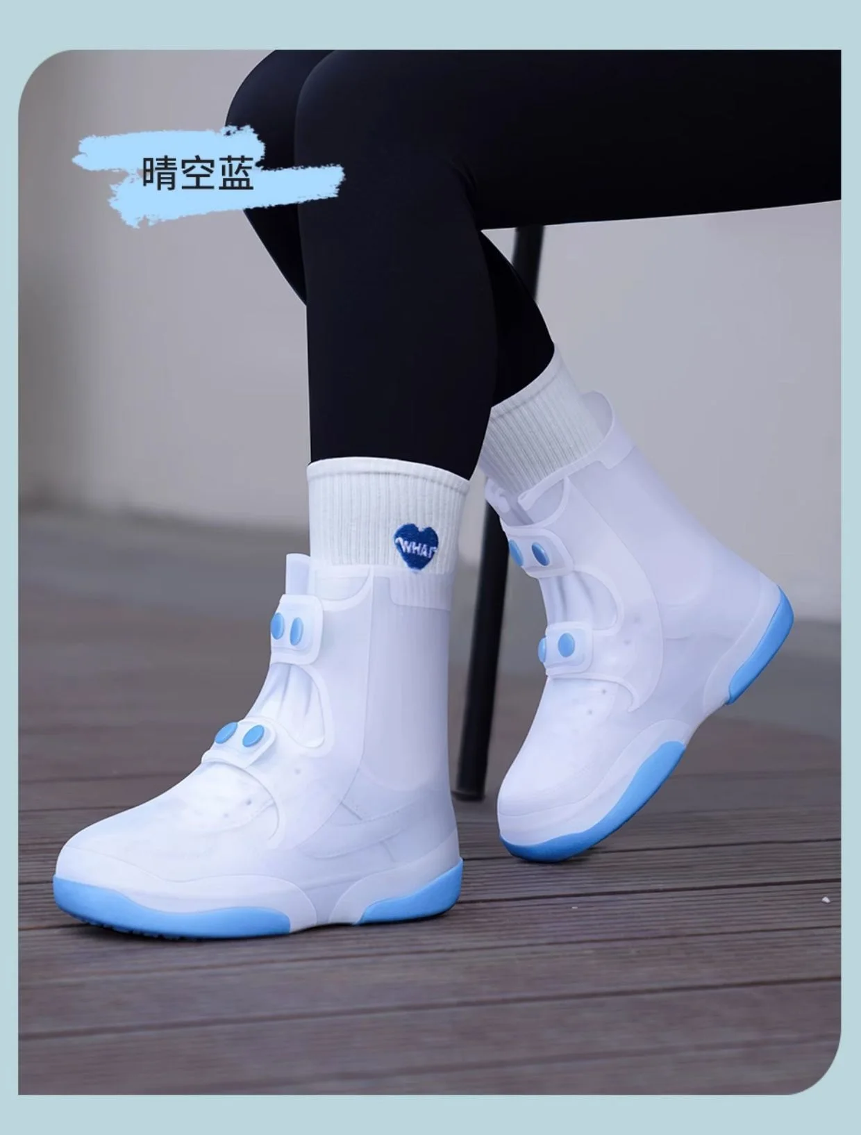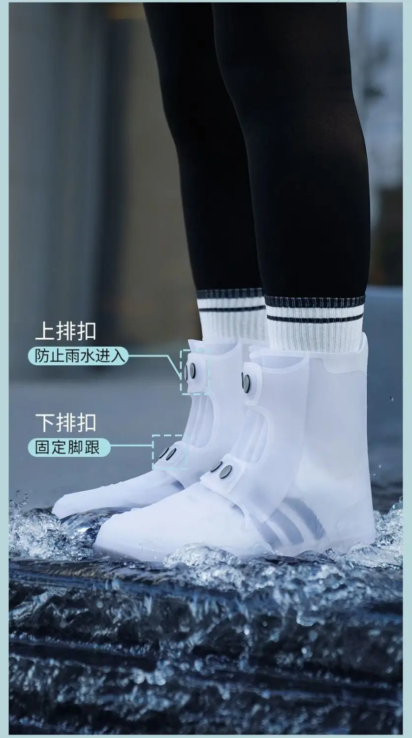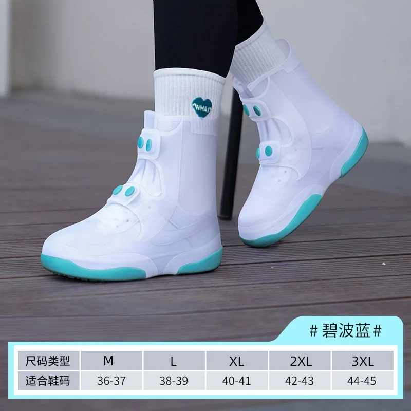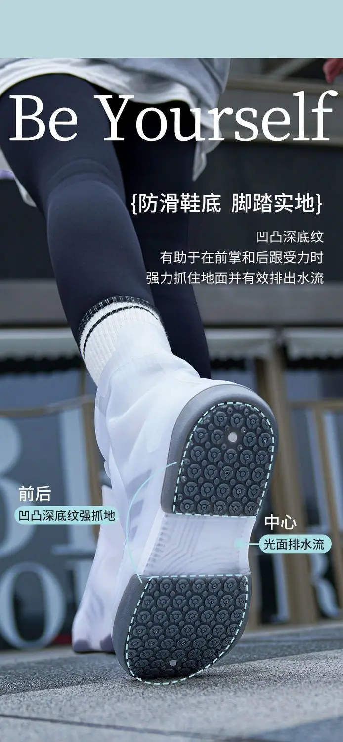 I had to walk 1.5 km under the rain, I'm not gonna lie, I get soaked, but I think it was my fault at tuck my pants unter this boots, so the water were draining to my feet, I couldn't feel the water in my feet unter the rain, and after 1.5 km walk the soles were still good, I'm happy with this product, it fit even with my biggest shoes, the only down side is that the soles can be pretty slepery on some types of floors