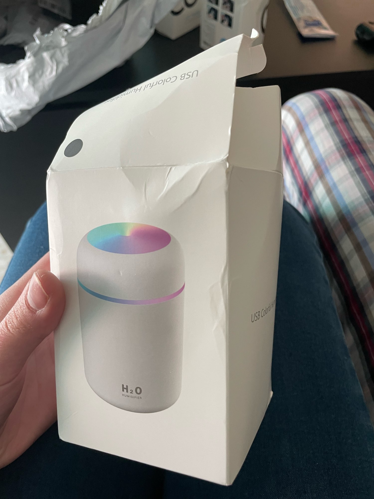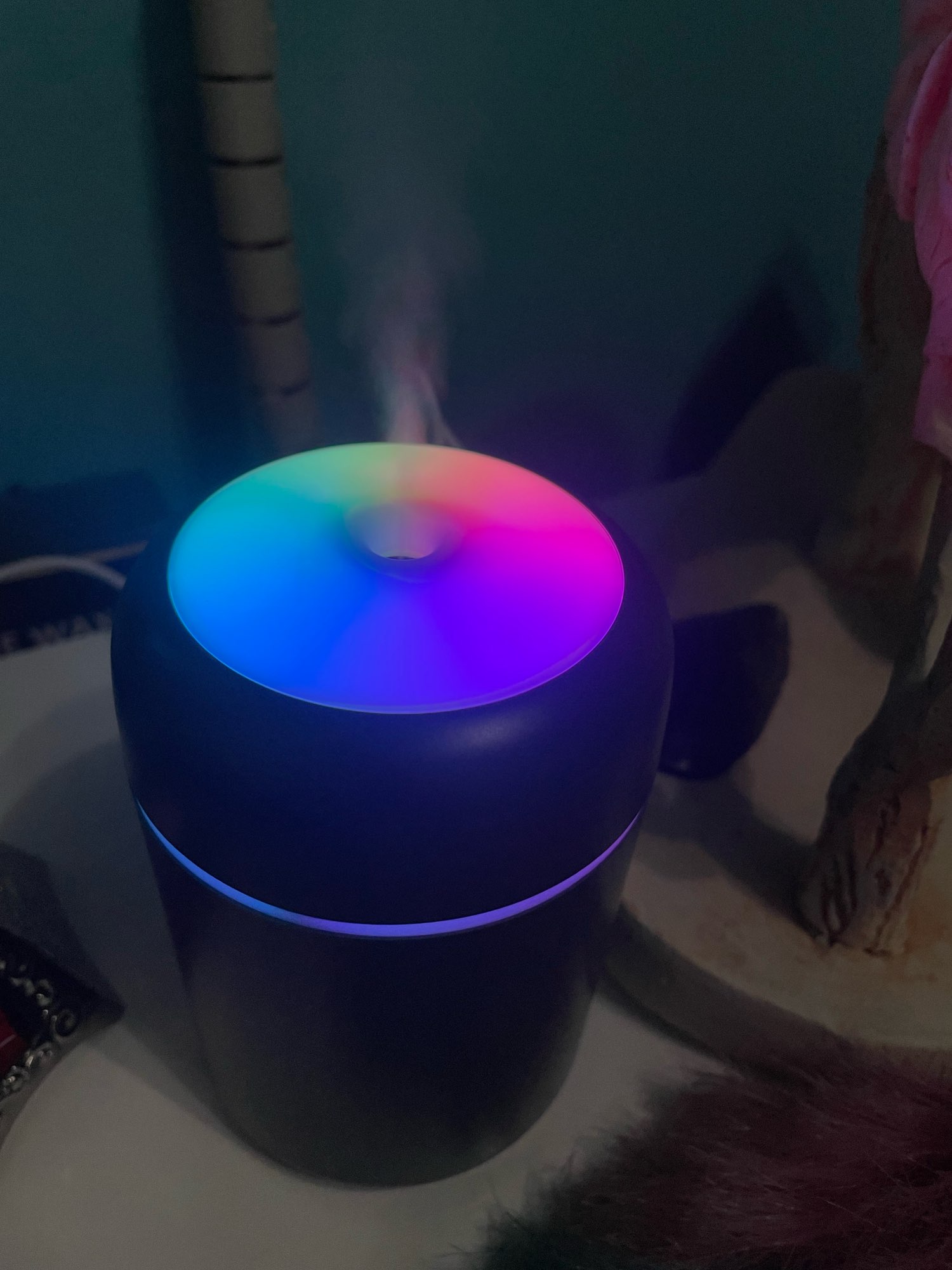I loved the product!! The mist it makes is quite strong, it changes colors and it is small, which makes it easy to transport. Only arrived with the box well crumpled, but it did not interfere with anything!