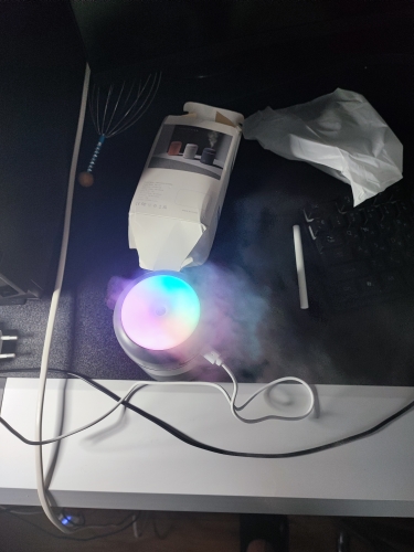 The delivery is fast, but the box was very broken, the humidifier works in two modes, if you hold the button, you can select the backlight, if you press the button, you can choose the steam mode.