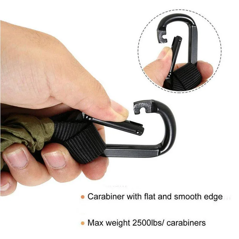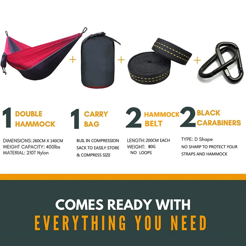 One Hammock,One storage bag,2 ropes,2 Black carabiners