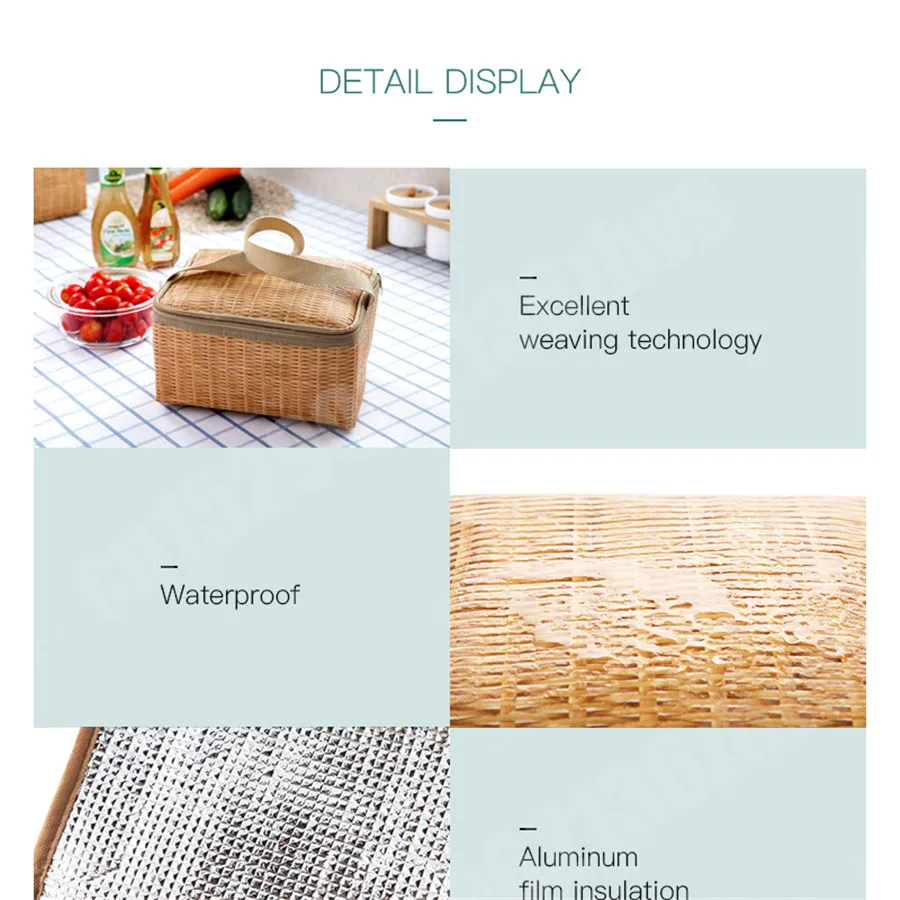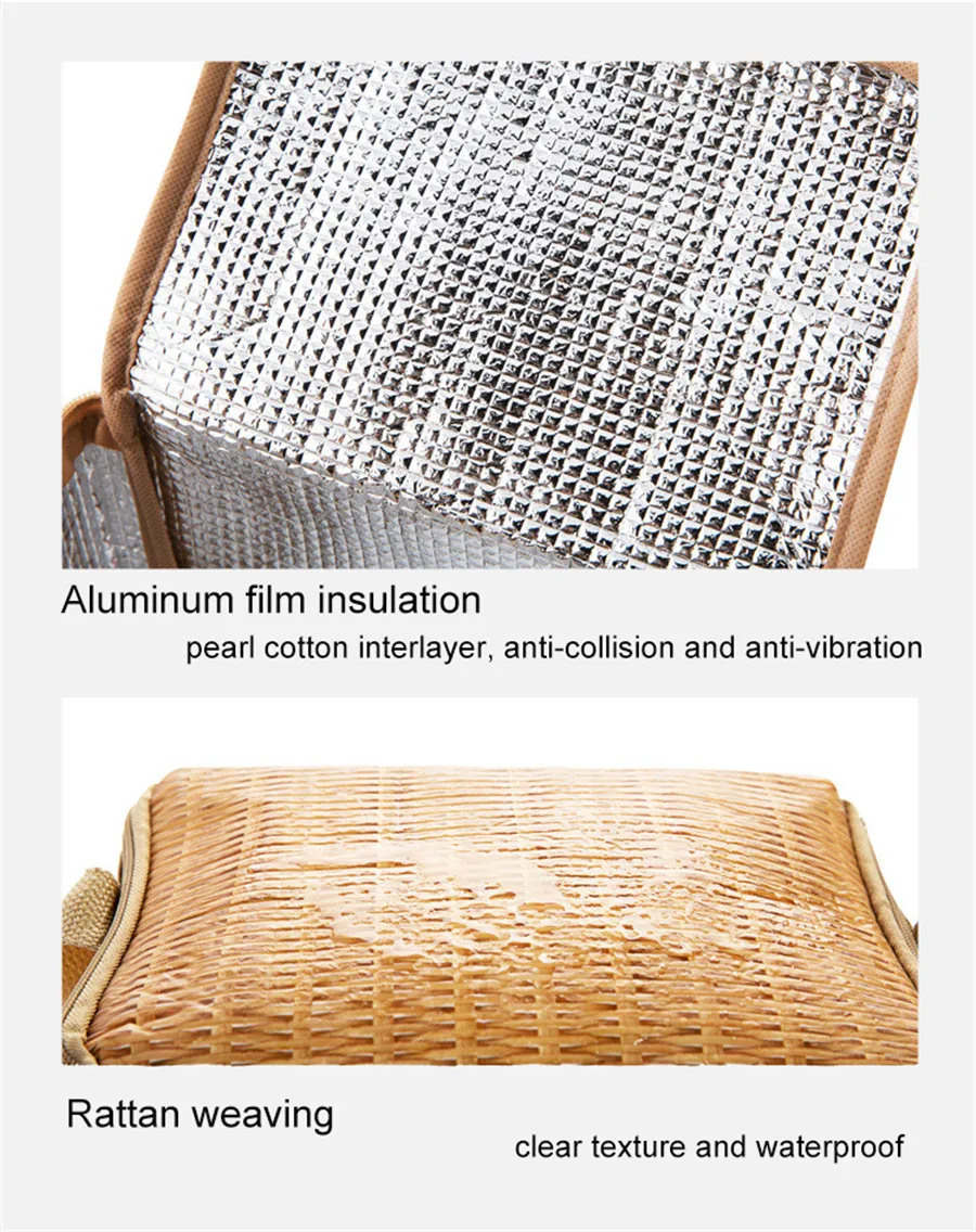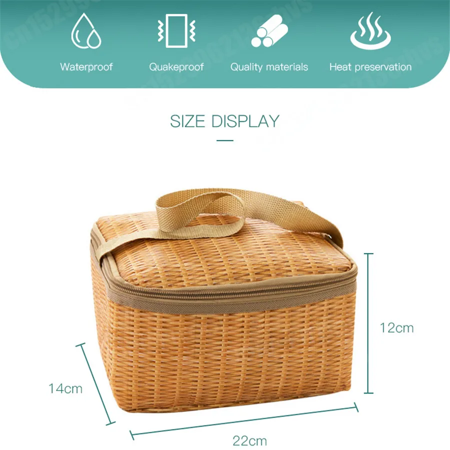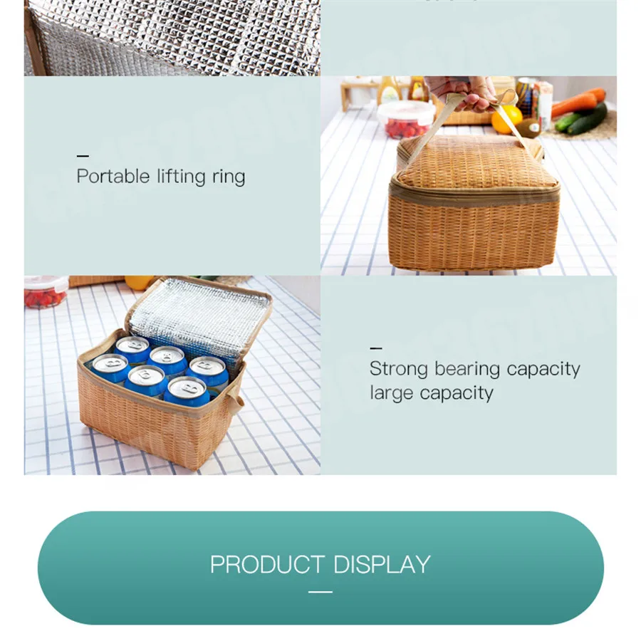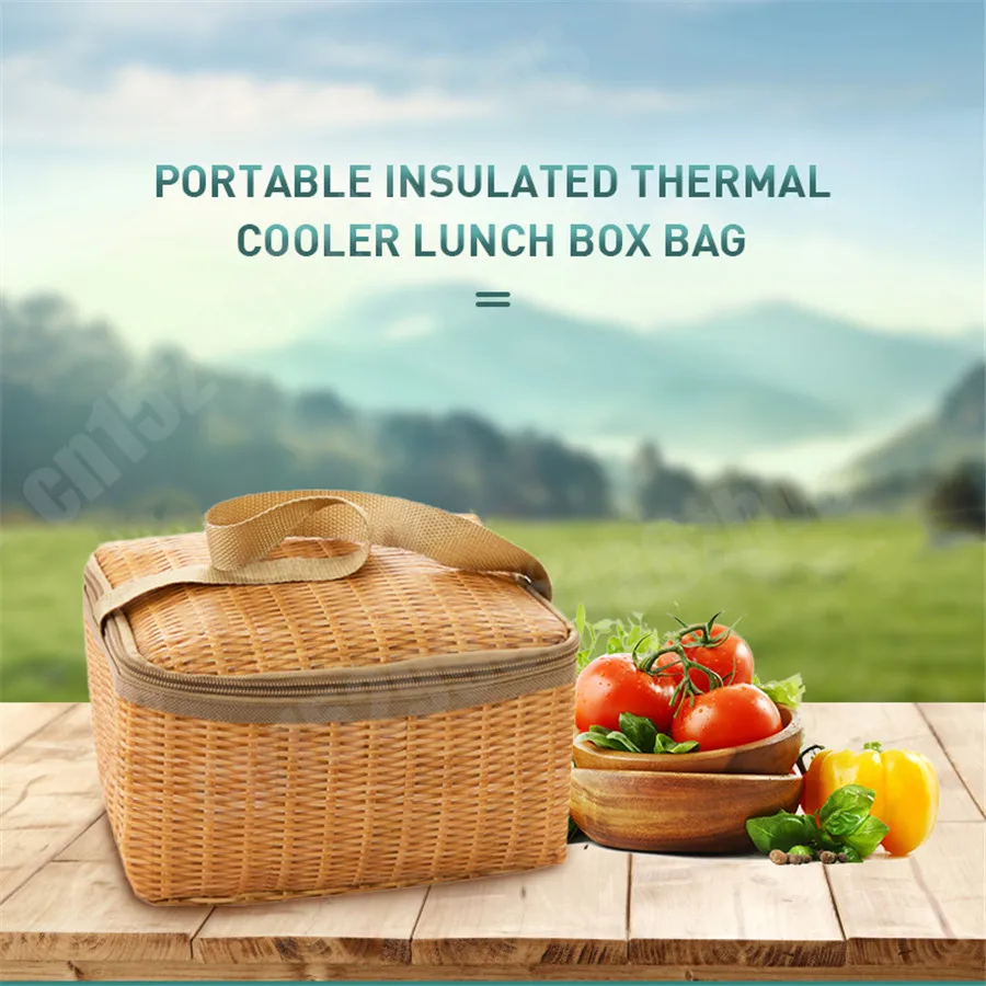 Portable Picnic Basket Imitation Rattan Lunch Bag Insulated Thermal Cooler Basket Bento Box Outdoor Camping Food Storage Box