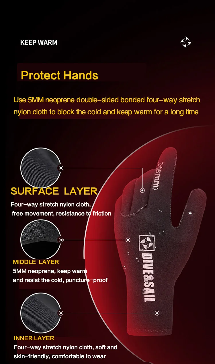 Premium 3MM 5MM Neoprene Diving Gloves Thicken Warm Wear-resistant Non-slip Surf Swimming Scuba Diving Snorkeling Wetsuit Gloves