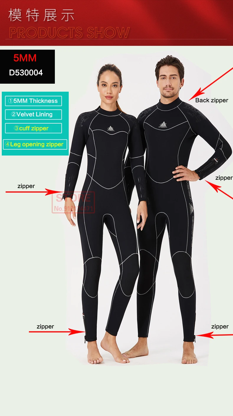 Premium 3MM/5MM Neoprene Wetsuit Men Professional Athletes Women Deep Scuba Diving Suits and Snorkeling Swimming Surf Wet Suit