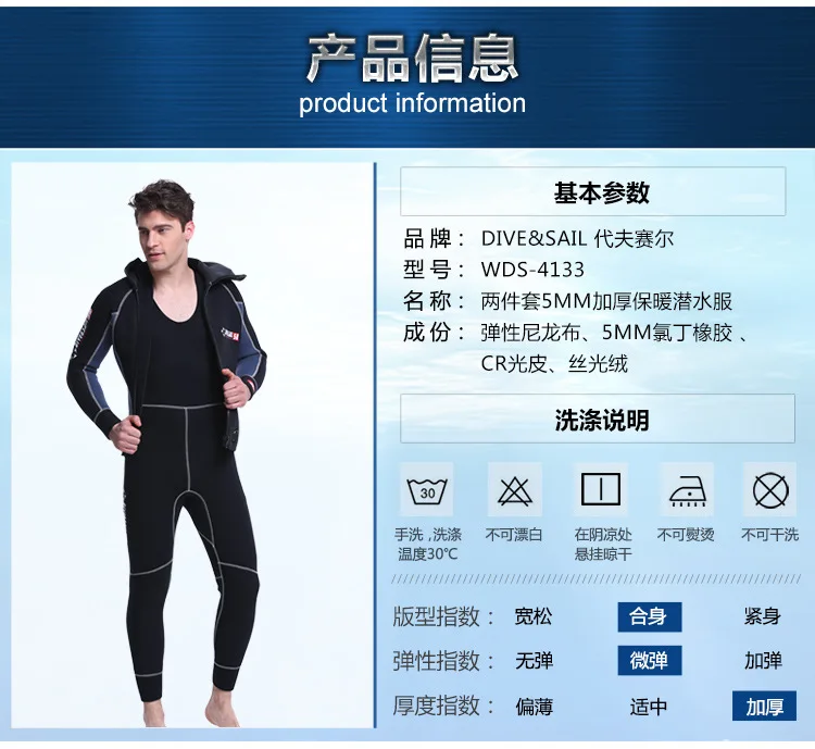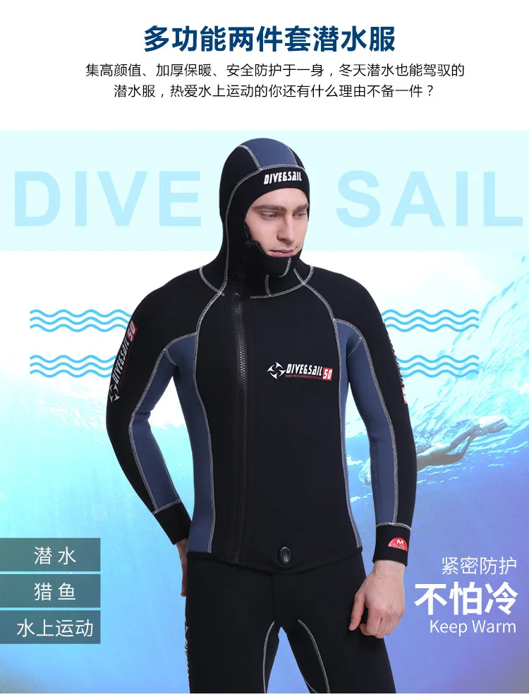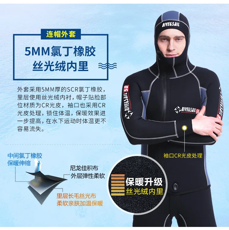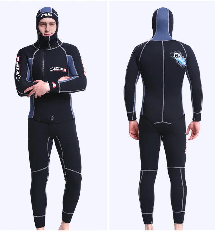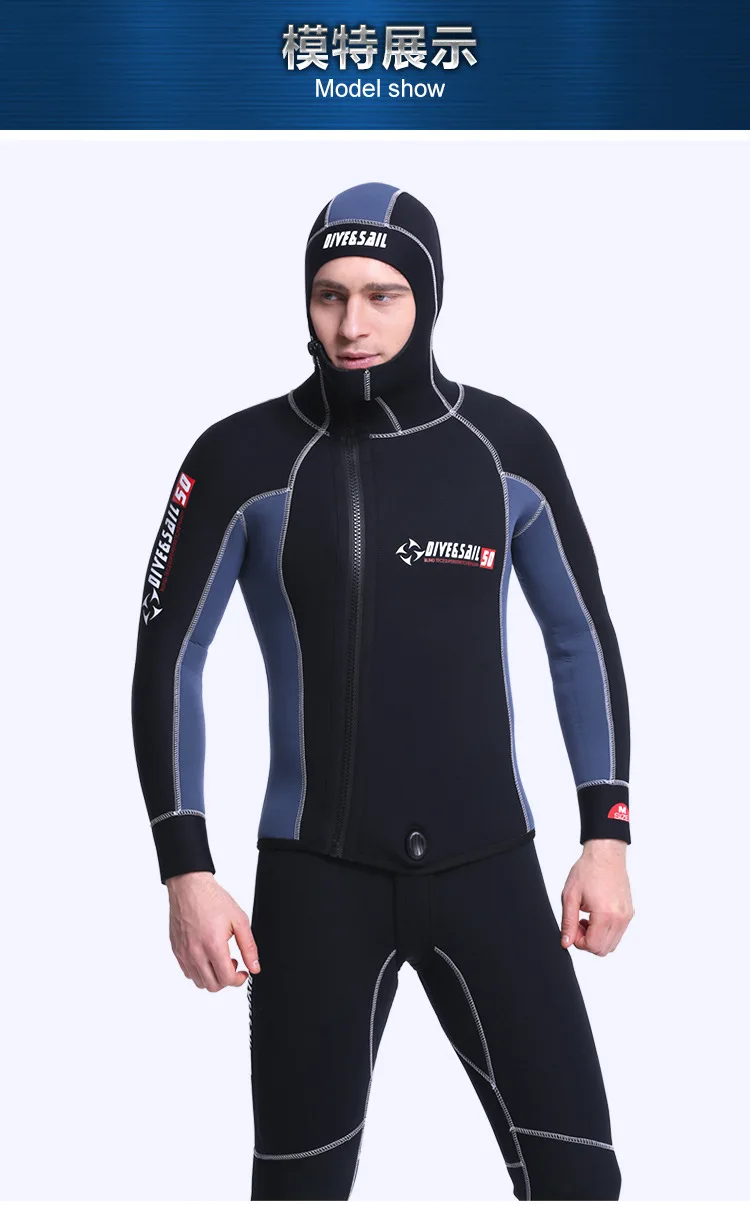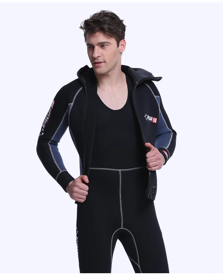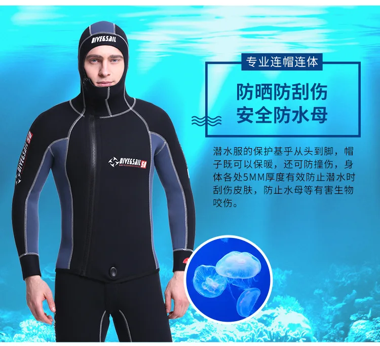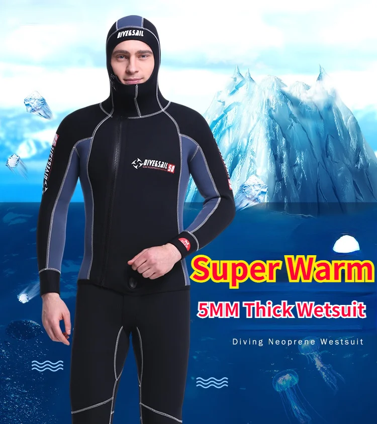 Premium Wetsuit Men 5mm Thick Neoprene SCR Thermal Deep Scuba Diving Fishing Hunt Front Split Wetsuit Hooded Jacket Diving Suit