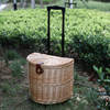 Rattan Trolley Picnic Basket Natural Wicker Weaving Lunch Baskets Wheels Family Outing Trip Picnic Bento Storage High Capacity