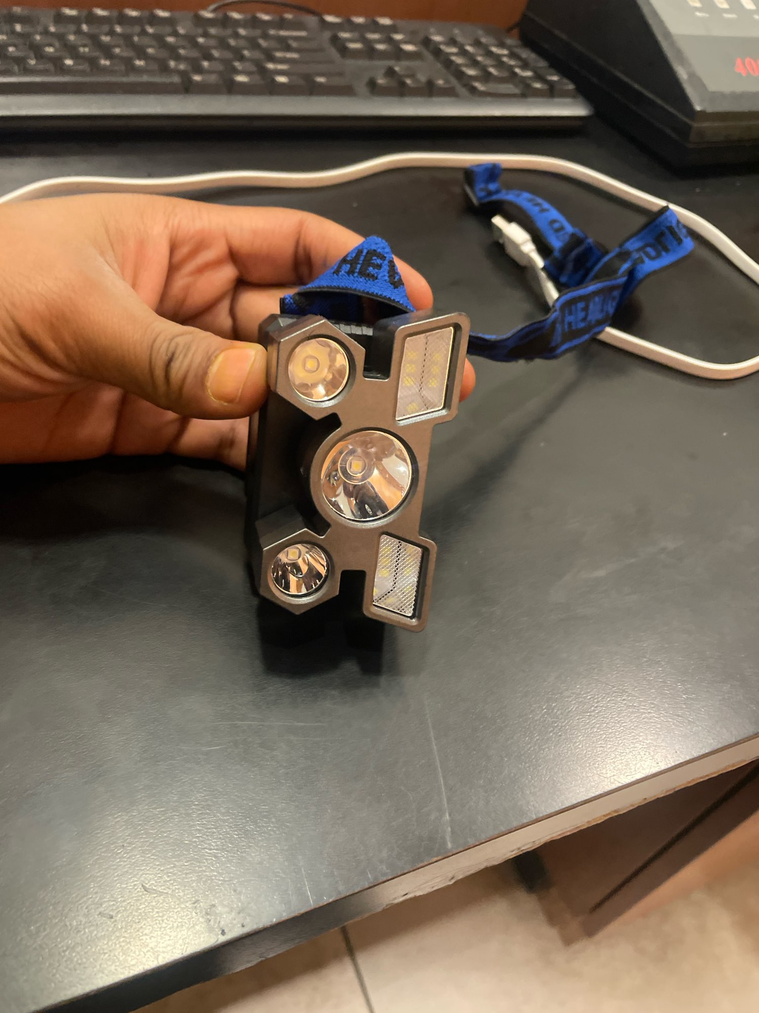 super bright and very adjustable with long lasting rechargeable batteries. it needs a micro c connection for the charging port.