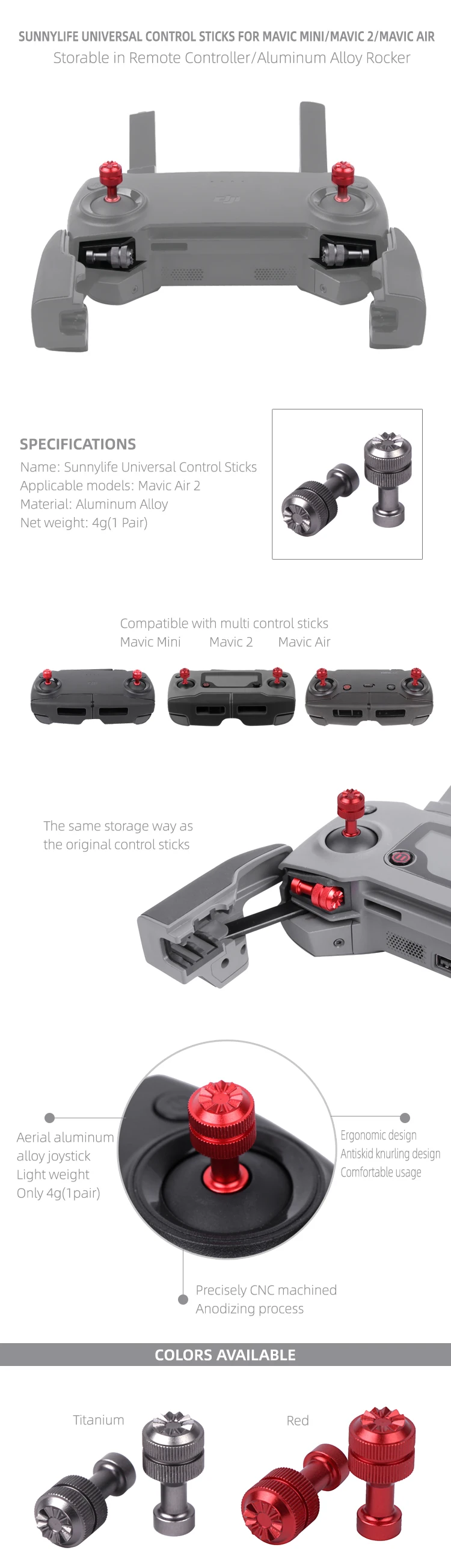 Remote Control Thumb Rocker Joystick Rod for DJI AIR 3/Mavic Air 2/mini 2/Mini 3 Rocker Accessories Aluminum Alloy Joystick