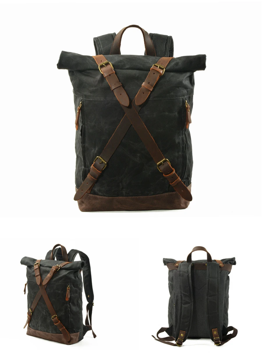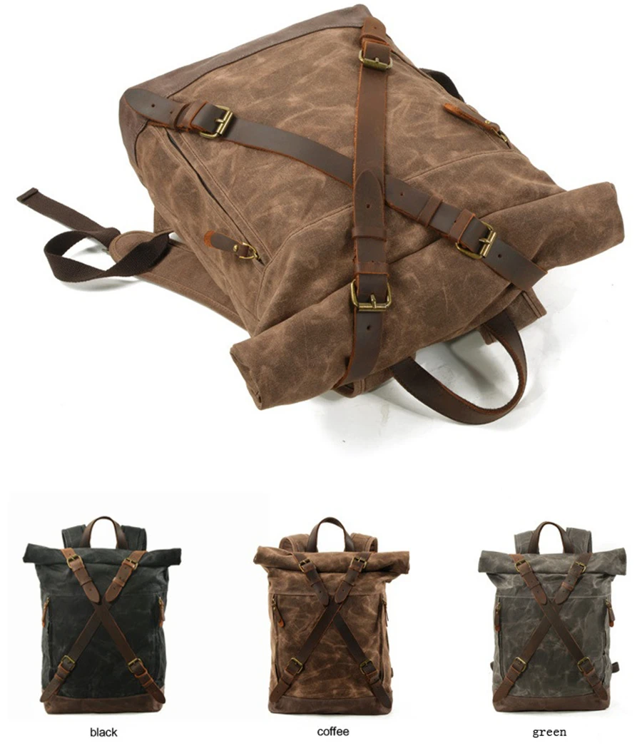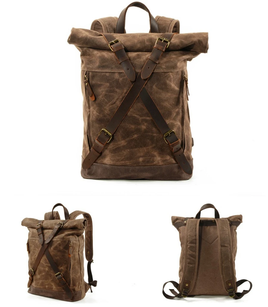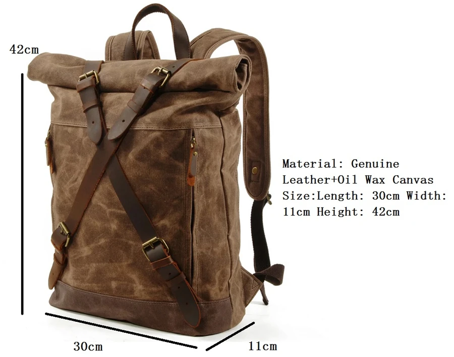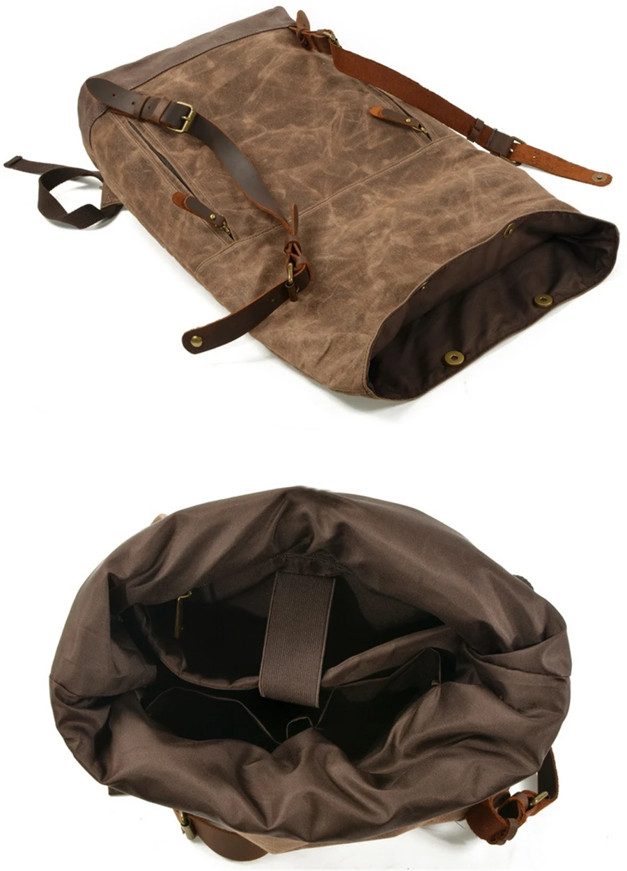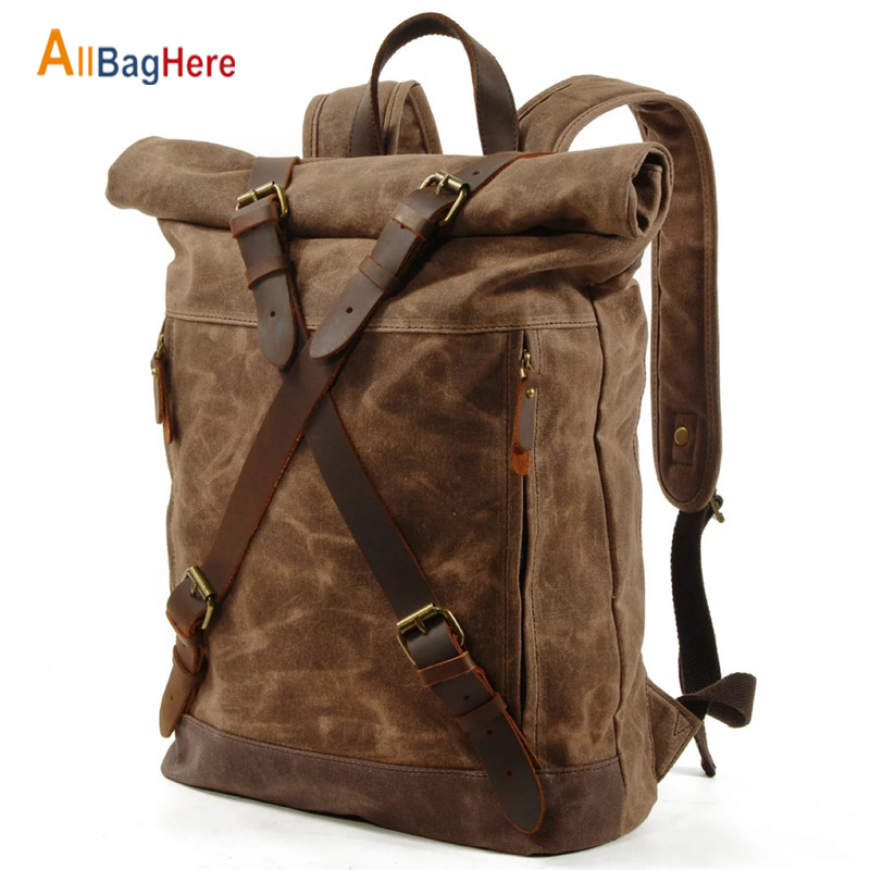 Retro Laptop Backpack Men Waterproof Canvas Leather Travel Rucksack Quality Large Capacity Outdoor Sports Hiking School Backpack