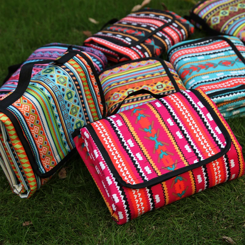 Retro Printed Camping Mat Waterproof Portable Outdoor Picnic Beach Blanket Mattress For Multiplayer Foldable Sleeping Hiking Pad