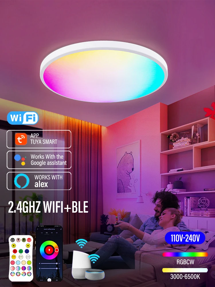 RGB Led Ceiling Light Dimmable Tuya Wifi Smart LED Lighting RGBCW Remote Control Ceiling Lamps Round Ceiling Lights Home Decor