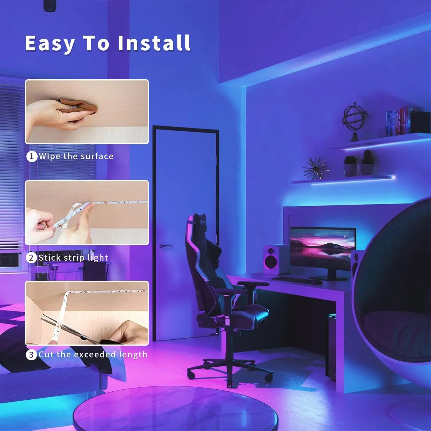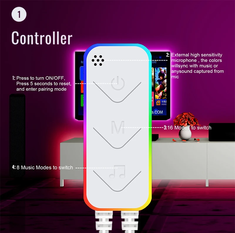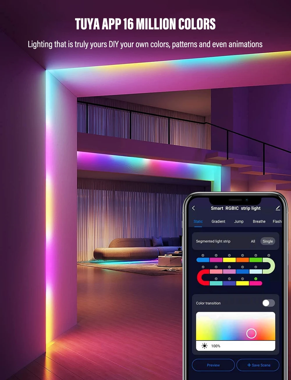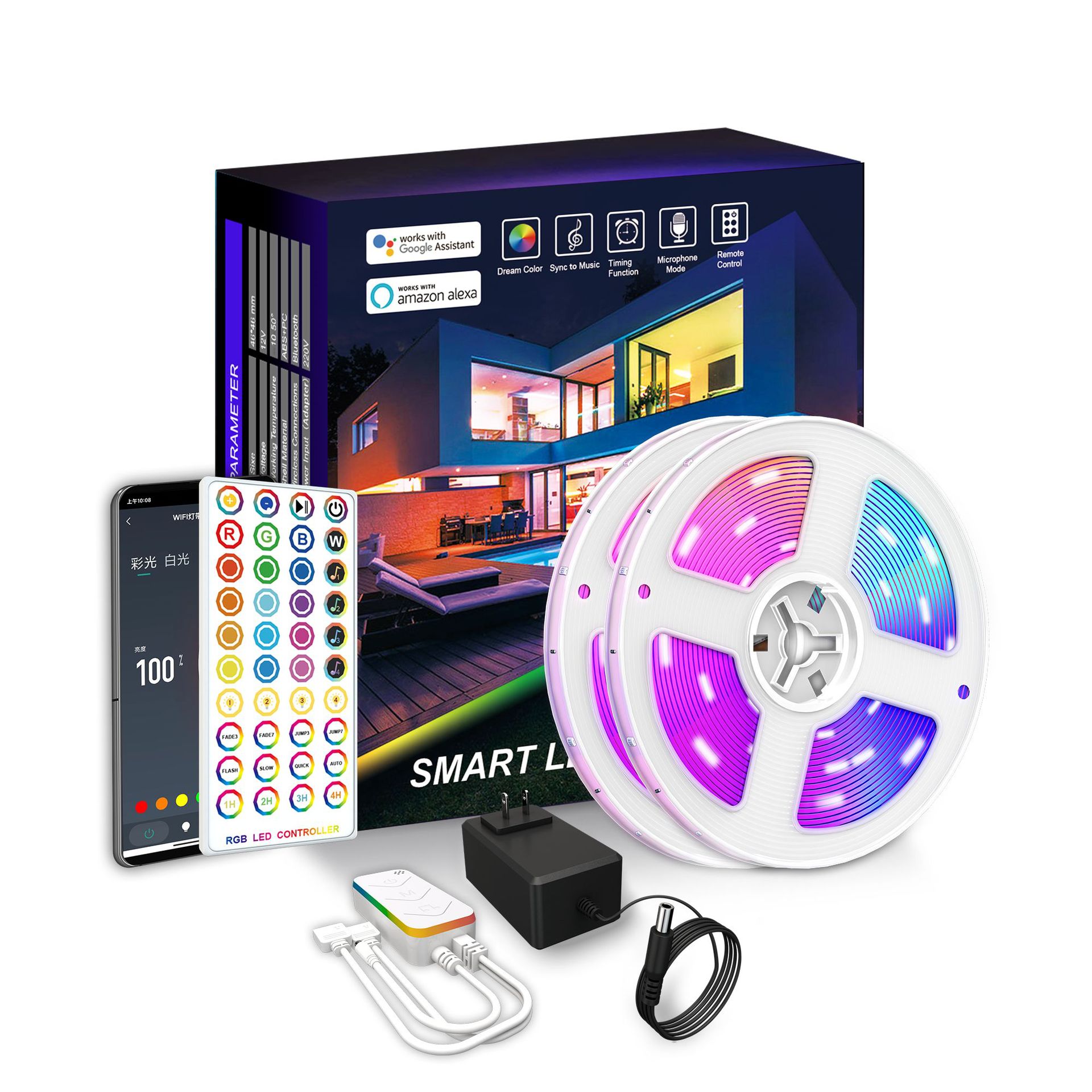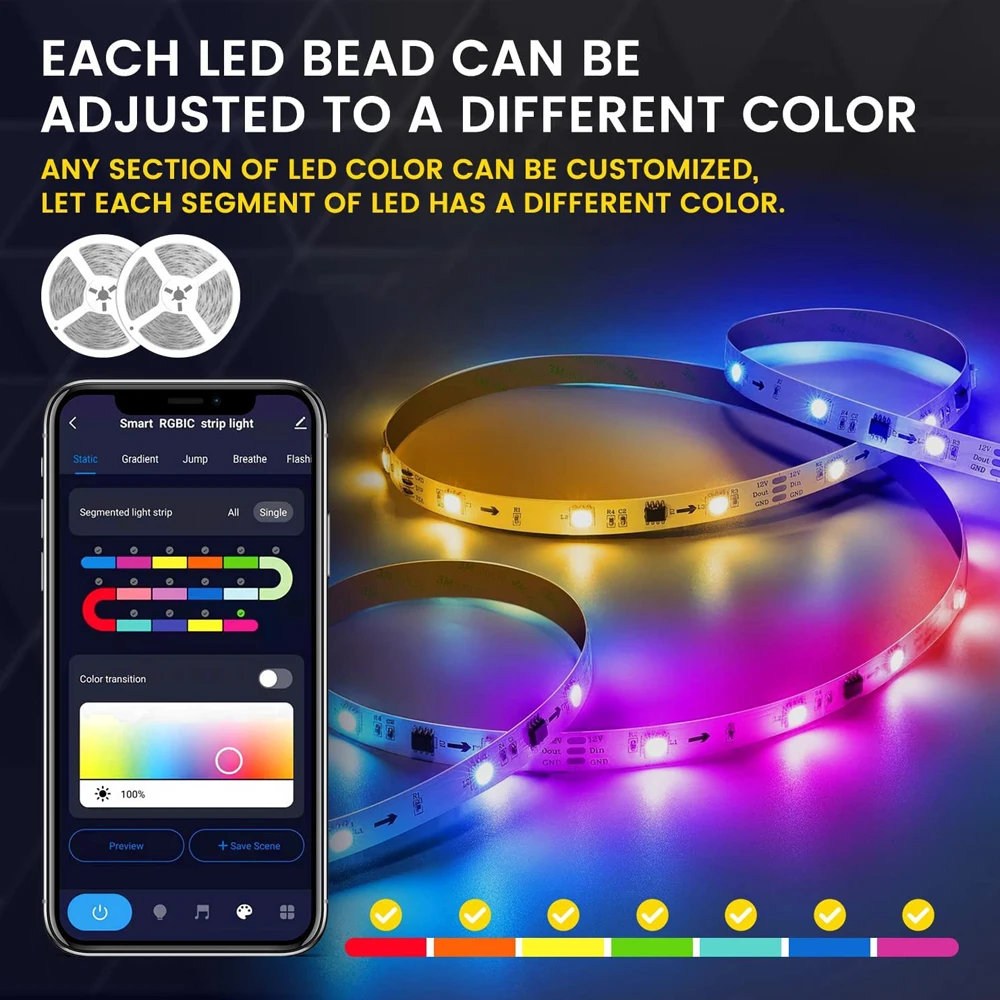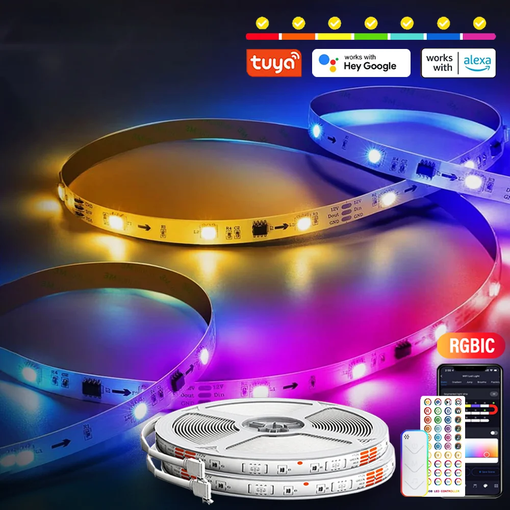 RGBIC LED Strip Lights with Alexa & Google Home Color Changing APP Remote LED Light Music Sync Backlights for Bedroom Game Room