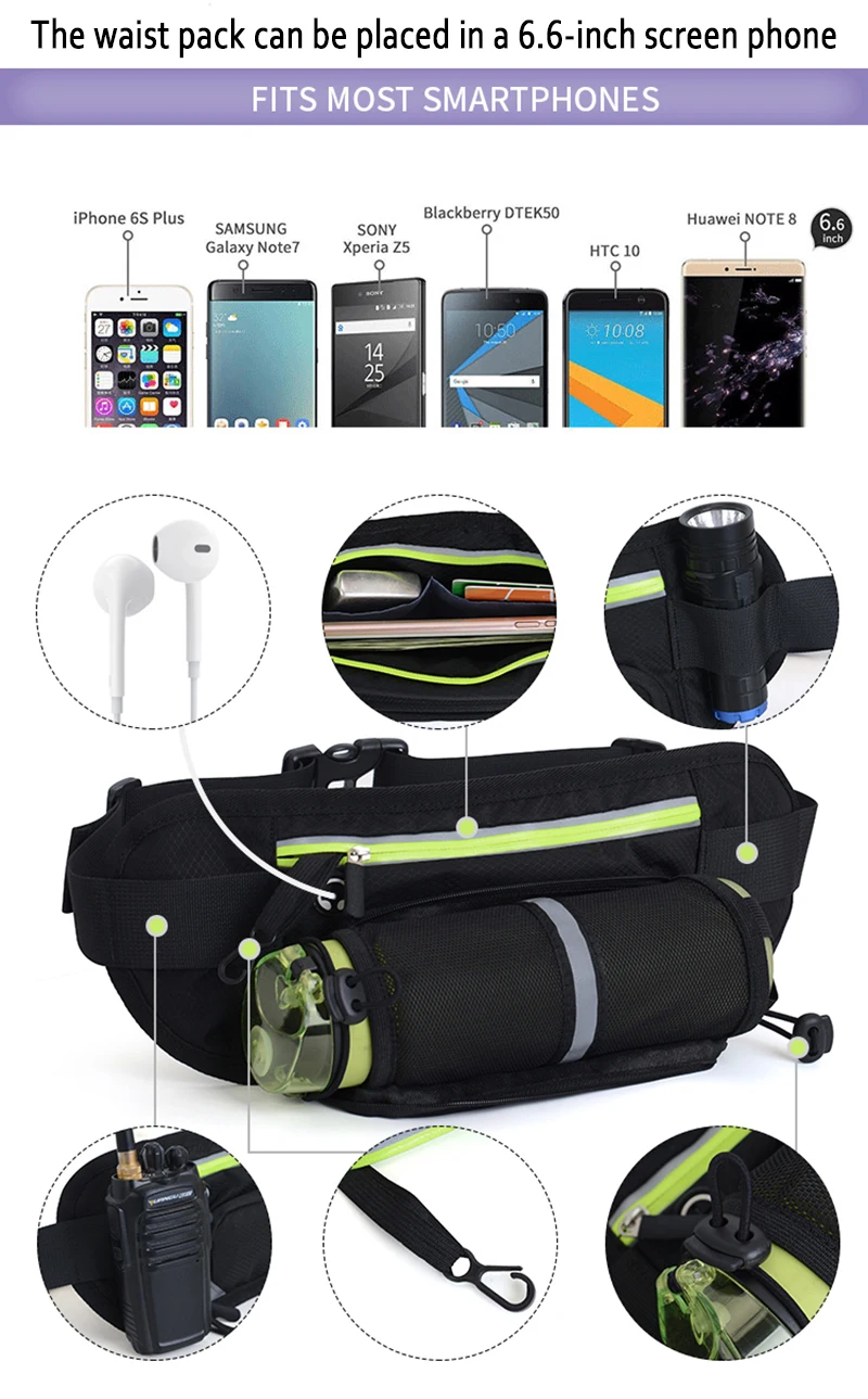 Running Waist Bag Men Women Sport Phone Belt Bags Water Waist Pack with Bottle Holder Gym Accessories for Running Hiking Cycling