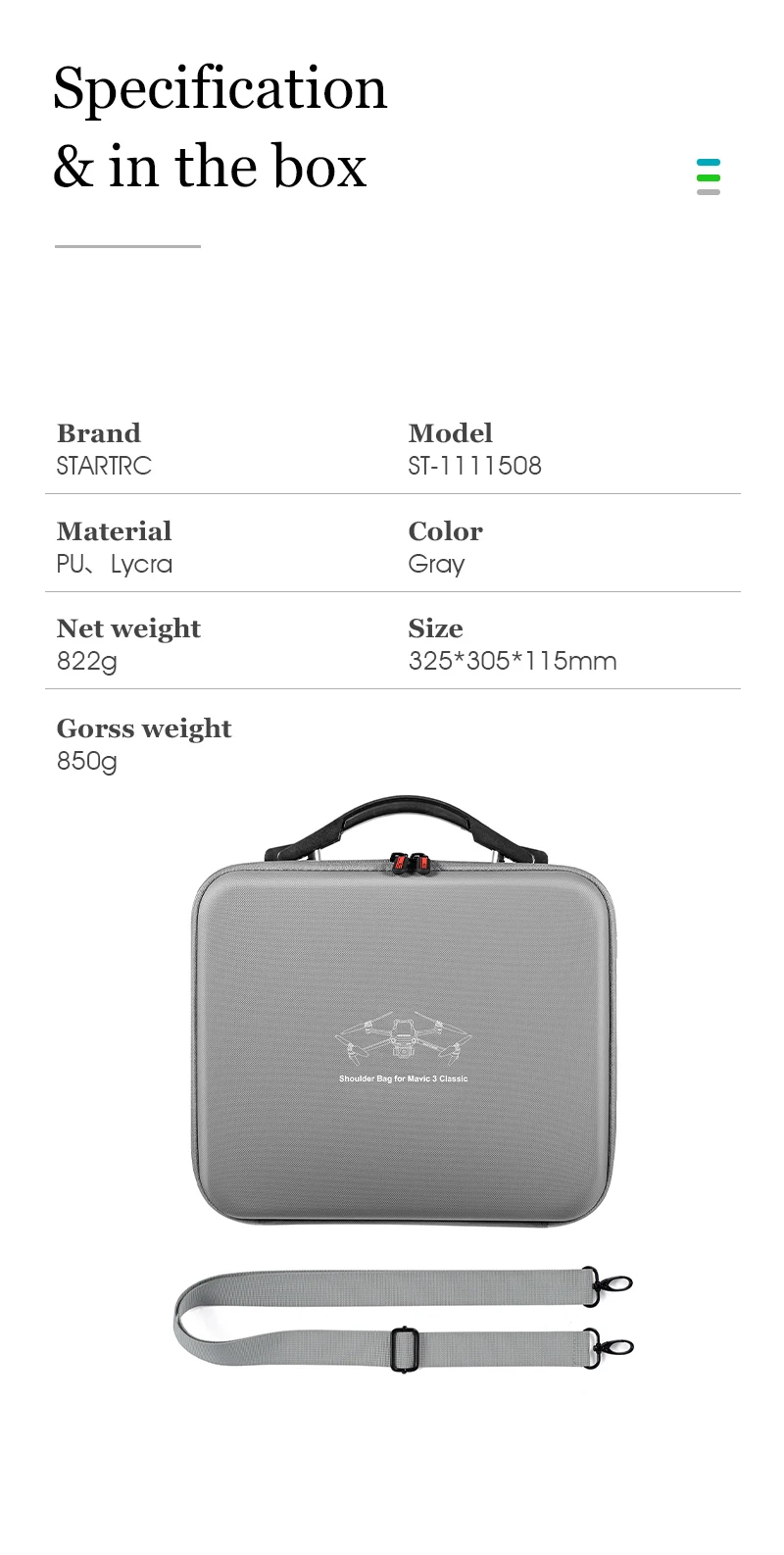 Shoulder Bag for Mavic 3 Classic Drone Accessories Storage Bag PU Watertight Case Handbag for DJI Mavic 3 Classic Backpack