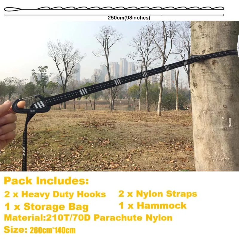 Single Parachute Hammock Adult Outdoor Backpacking Travel Survival Hunting Sleeping Bed Portable With 2 Straps 2 Carabiner