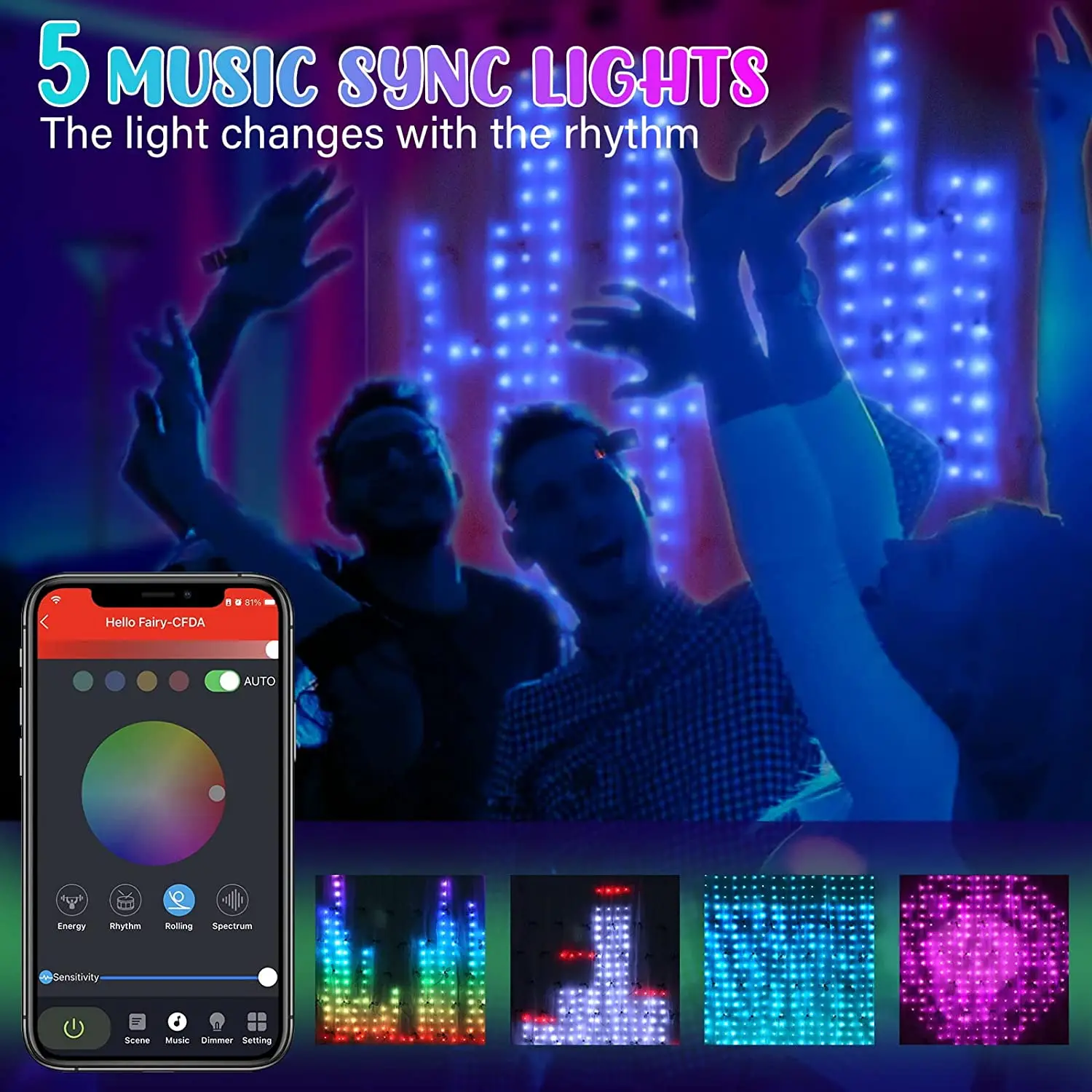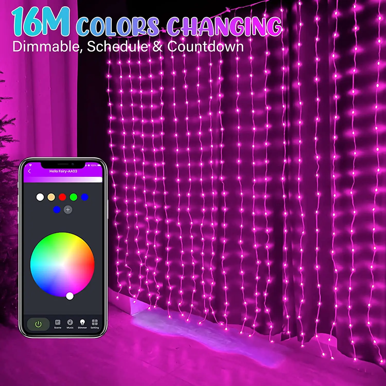 Smart Window Curtain String Lights Color Changing