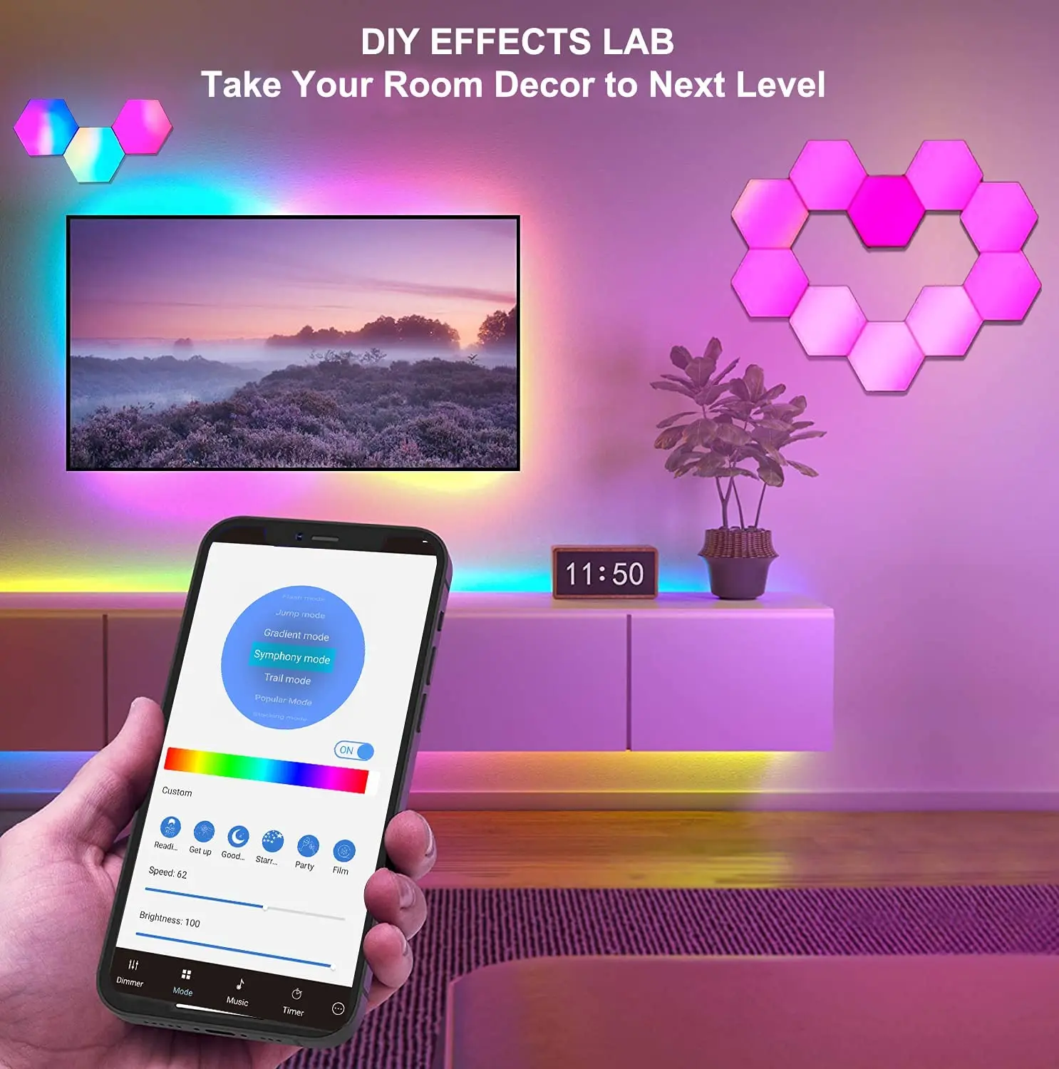Smart LED Hexagon Wall Lights Music Sync Glide Night Light Panel Works with Alexa Google Assistant for Living Room Bedroom Decor