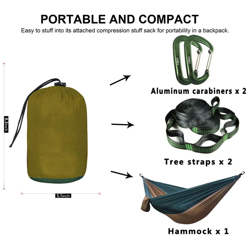 Camping hammock with Tree Friendly straps and Aluminum carabiners