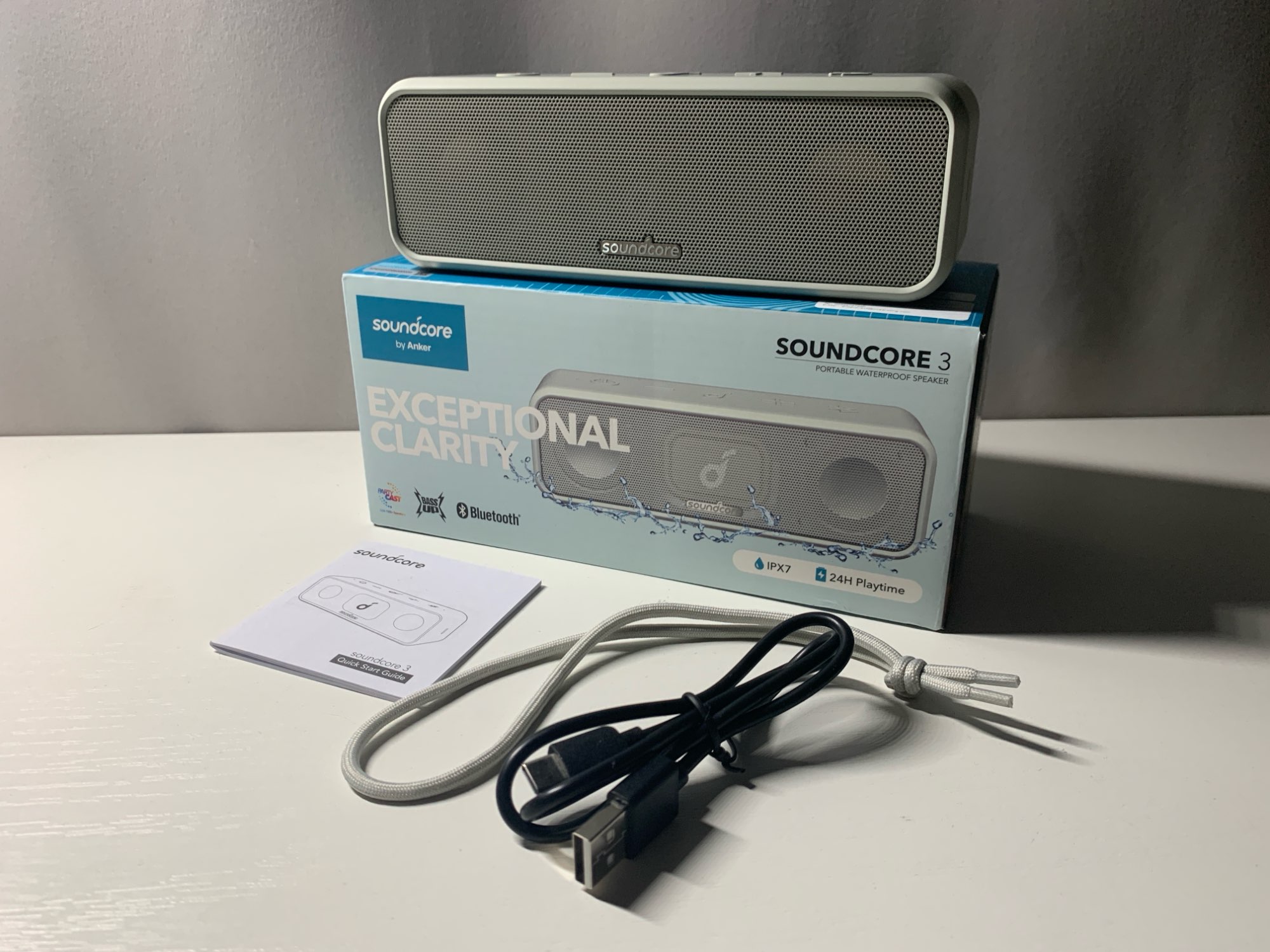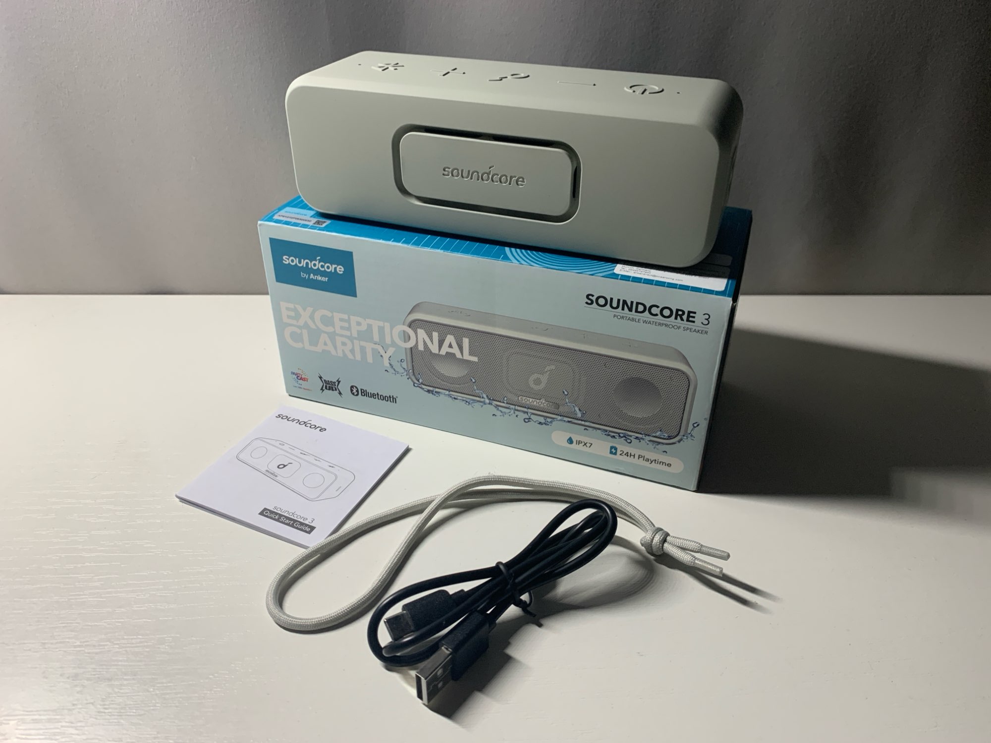 Заказ приехал на 2 недели раньше заявленного срока. Заказ упакован очень надежно, огромное спасибо продавцу! Колонка Soundcore 3 Grey полностью соответствуют описанию. Как и все товары этого бренда, отличного качества. Цвет такой как в описании. Качественные материалы, отличная сборка. По звуку все хорошо, высоких бы немного побольше. Соотношение цена-качество 10/10. Очень доволен, учитывая цену за настолько качественный продукт! Продавца рекомендую, как и Все его товары! Всем удачных покупок и продаж.