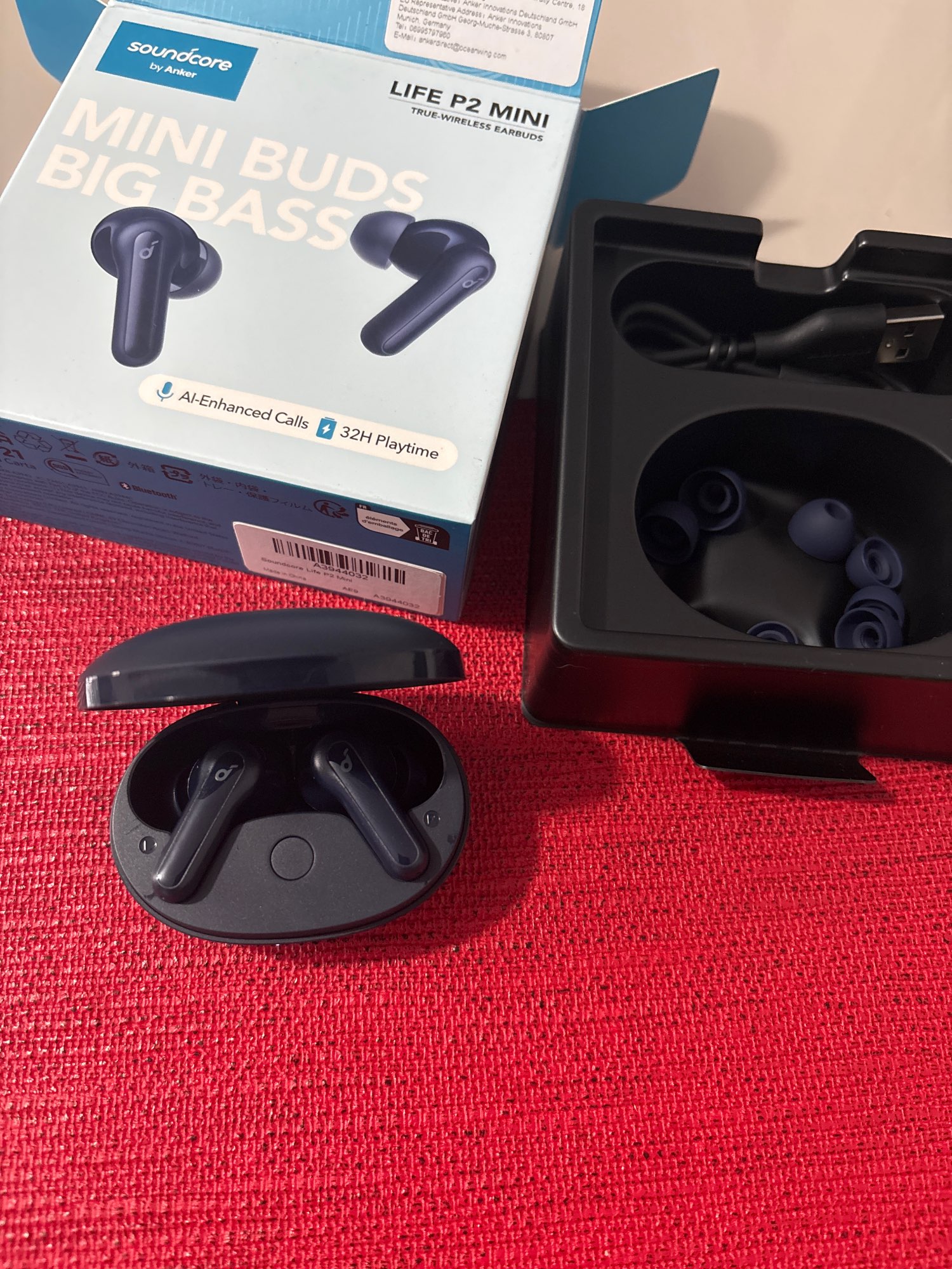 наушники отличные,звук сочный,аккумы в ушах очень ёмкие,в базе не очень,часто нужно заряжать,но это и понятно,размер небольшой..очень доволен товаром..