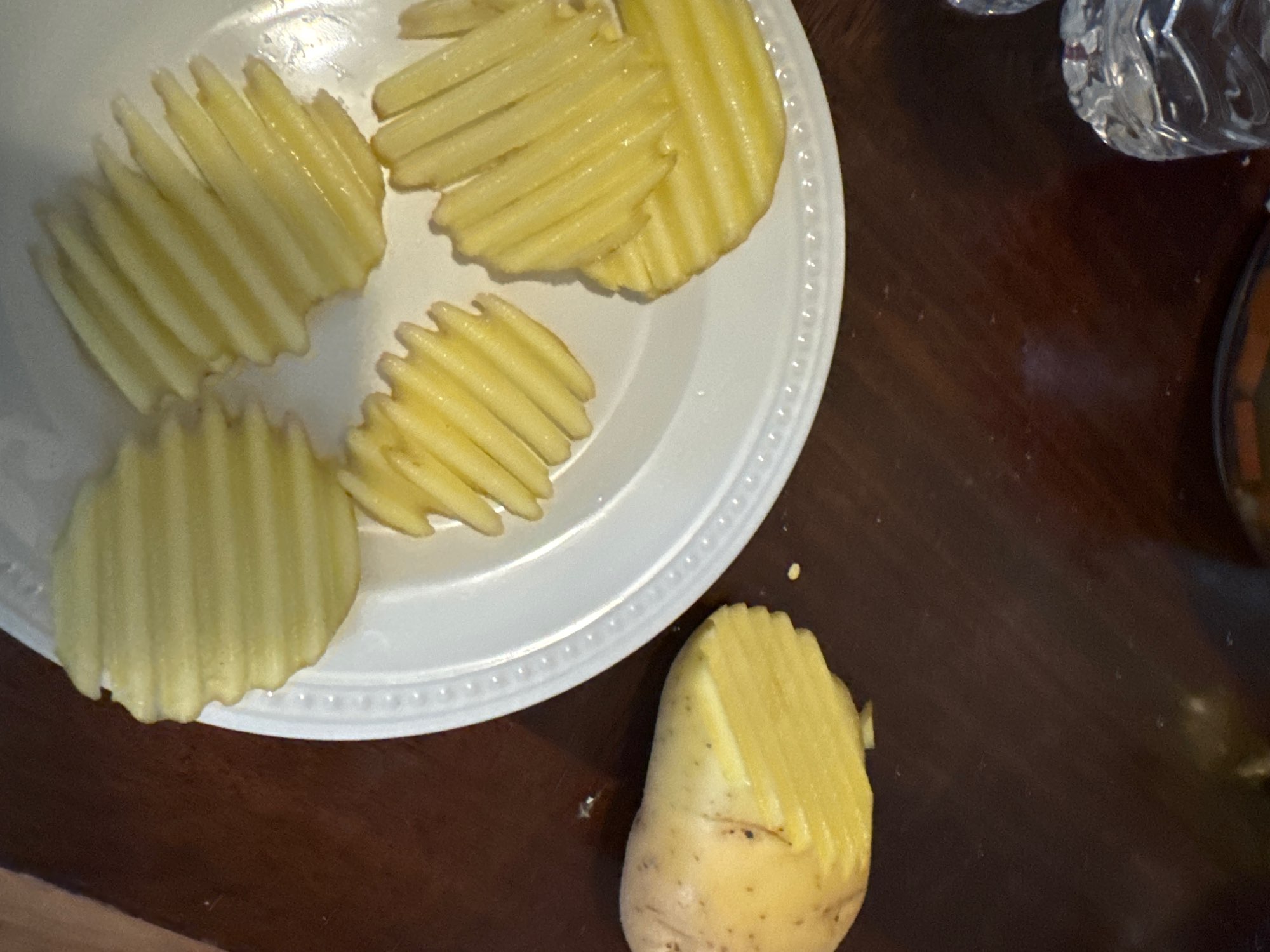 Works quite well providing finger /thumb tips kept clear of the cutting blade.....tried it out on sweet potatoes for the air fryer.