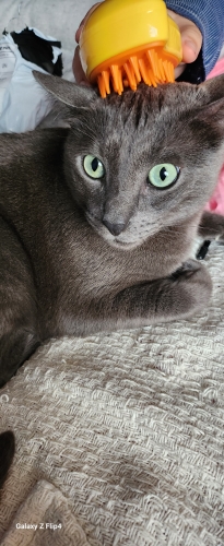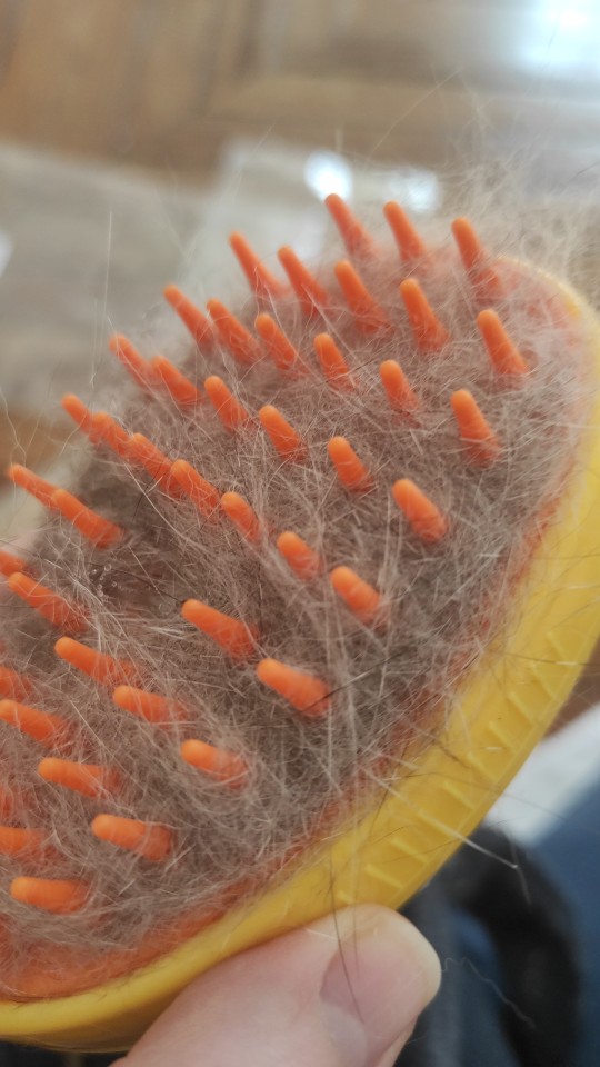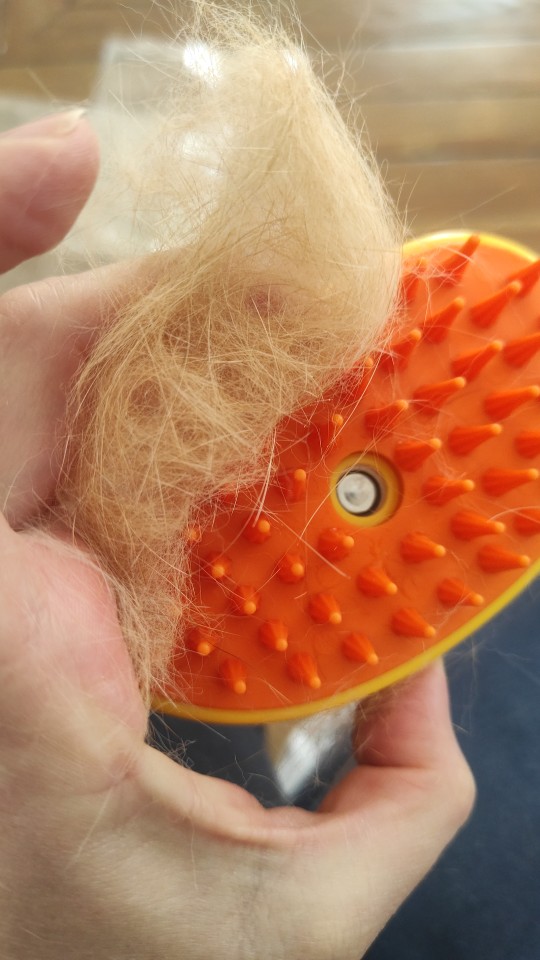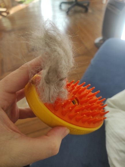 My cat did not like it very much at the beginning because of the sows A little long and hard, but then he got used to it and the steam does not come out hot is fresh and that helped him get a lot of hair out. My clean and happy cat I recommend this comb ..