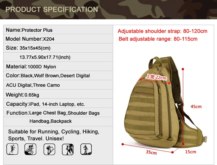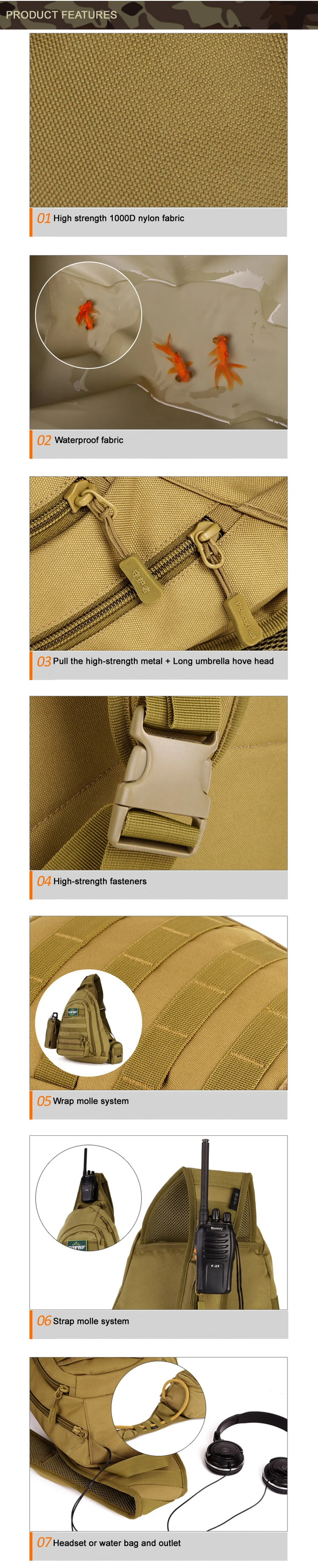 Tactical Backpack 14 Inches Laptop Military Field Chest Bag Outdoor Sports Hiking Waterproof Single Shoulder Bags Multifunction