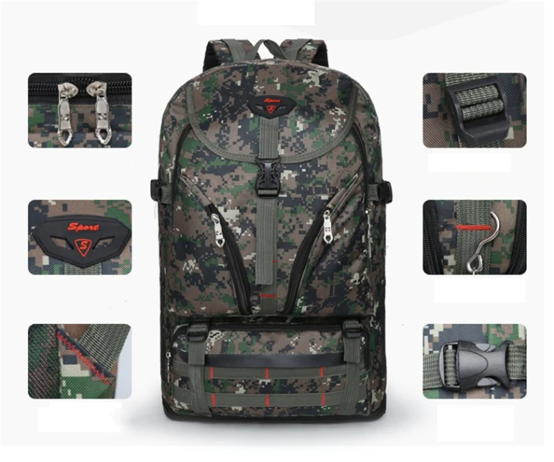 Tactical Backpack Outdoor Travel Camo Hiking Backpack Student Full Shoulder Laptop Bag Waterproof Oxford Hunting Durable Bag Men