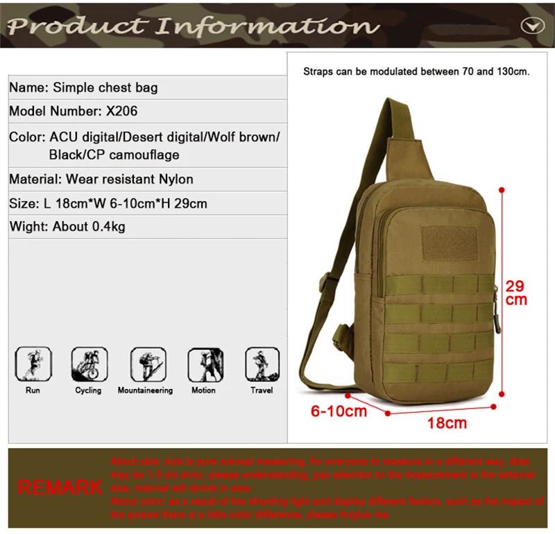 Tactical Chest Bag 10 inches tablet PC Waterproof Nylon Military Travel Bags Outdoor Sports Messenger Cycling Camping Hiking Bag