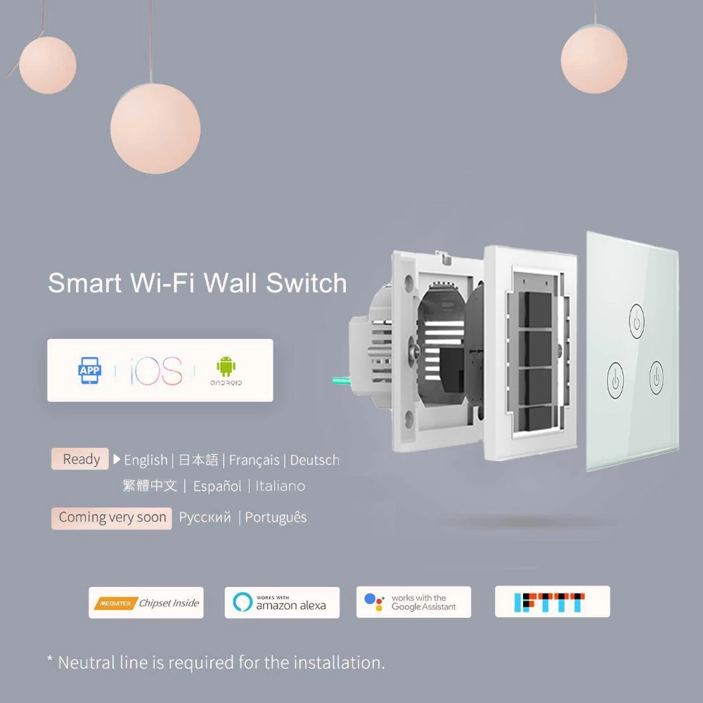 TANGGOOD WiFi Light Switch Smart Wall Switch 3 Gang EU UK Work with Alexa & Google Assistant & IFTTT App Remote Control