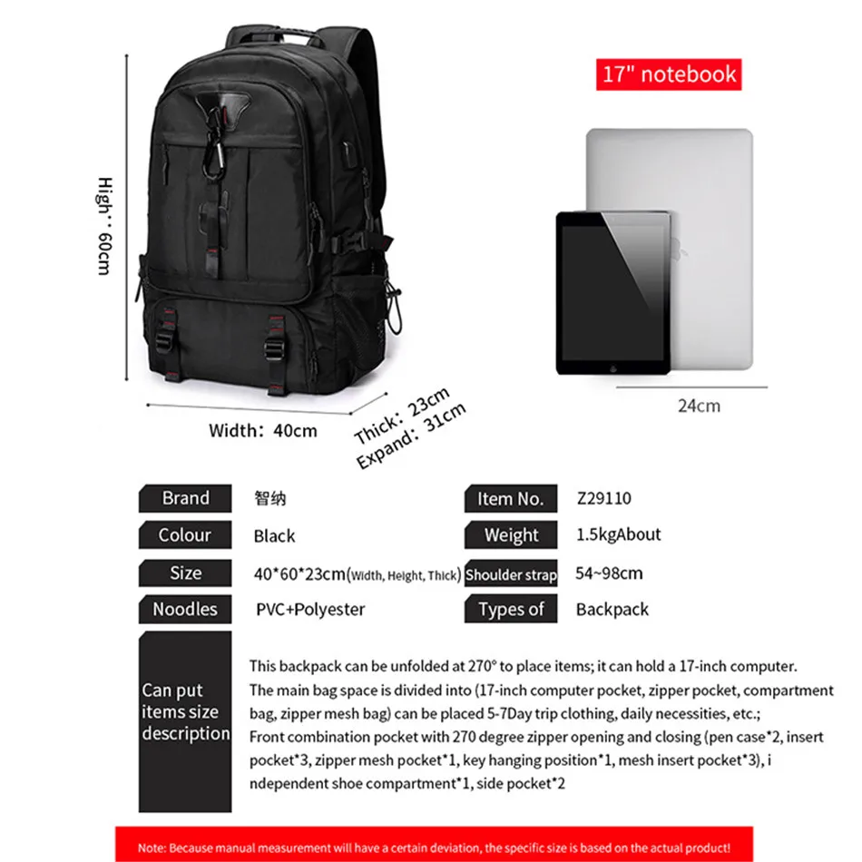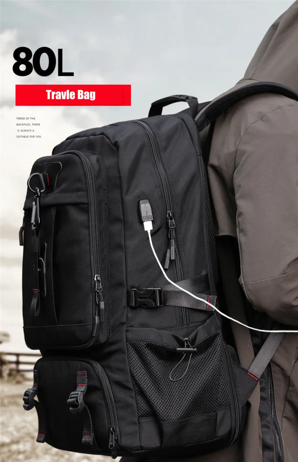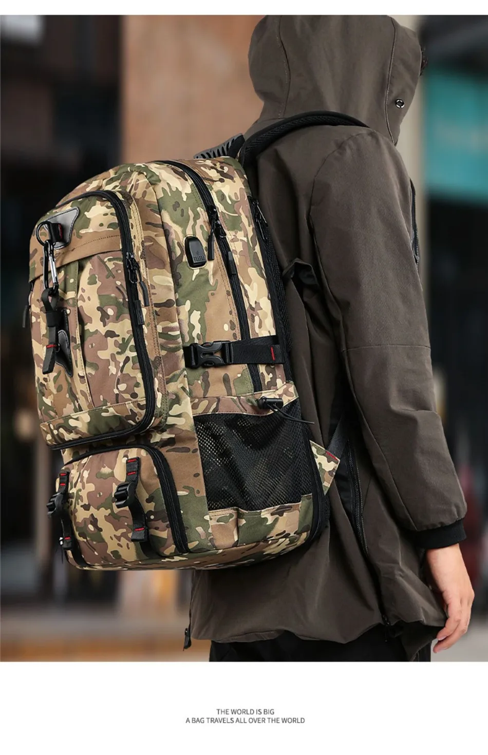 Travel Backpack Camo Outdoor Mountaineering Business Trip 60/80L Large Capacity Solid Color Multi-function With Charging Port