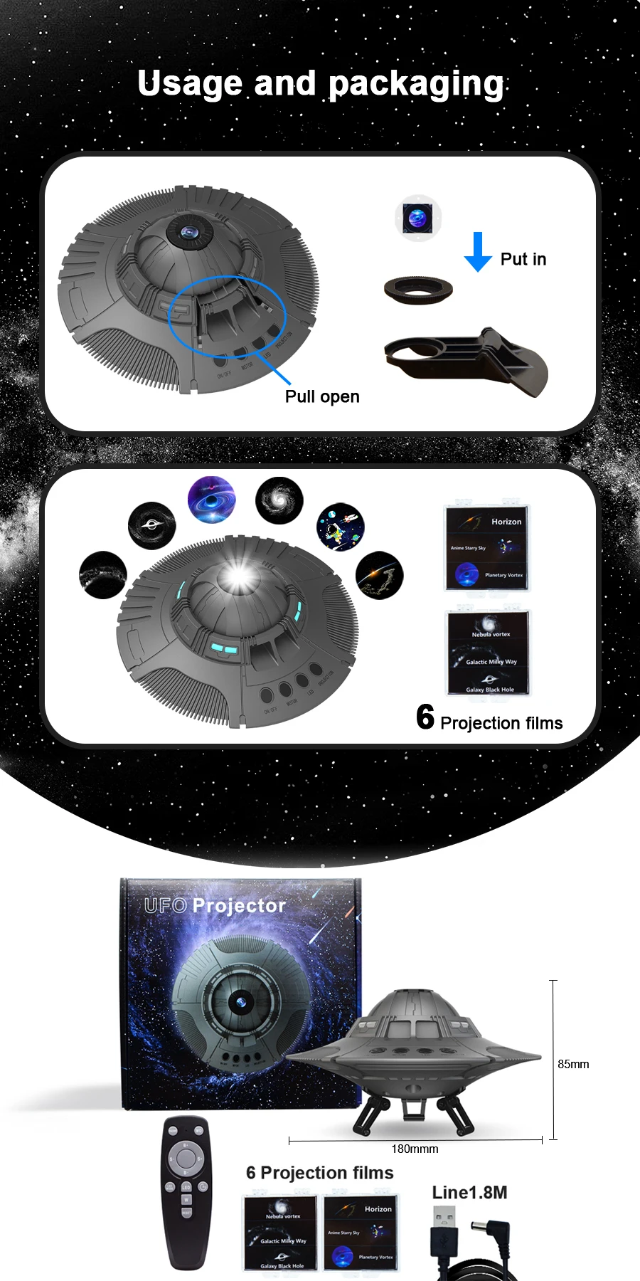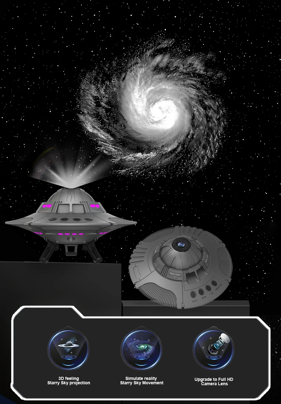 UFO LED Galaxy Starry Projector Night Light 360° Rotate Planetarium Star Sky Projection Lamp For Bedroom Home Kids Birthday Gift
