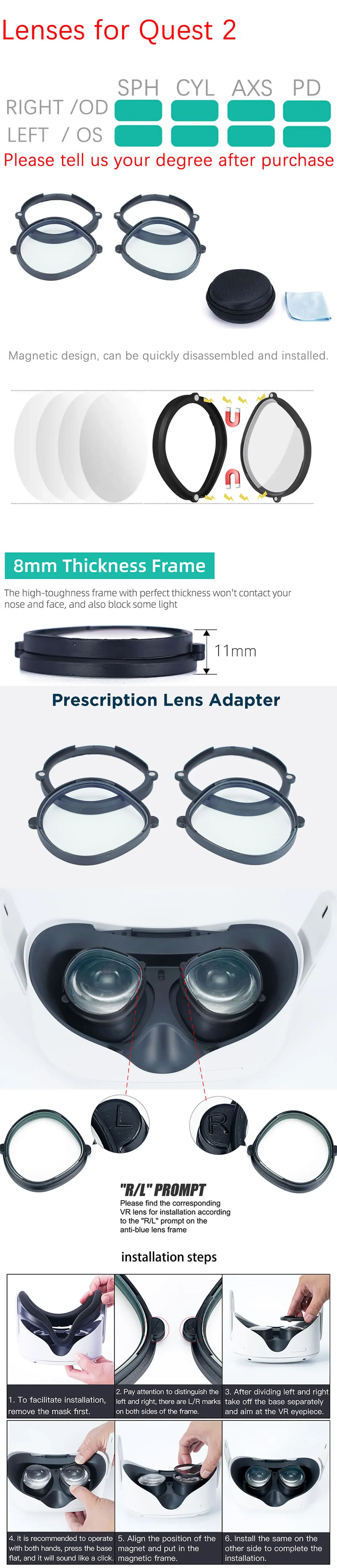 VR Lenses for Oculus Quest 2 Myopia for PS VR2 Prescription Lens PICO 4 Anti Blue Prescription Lenses Accessories