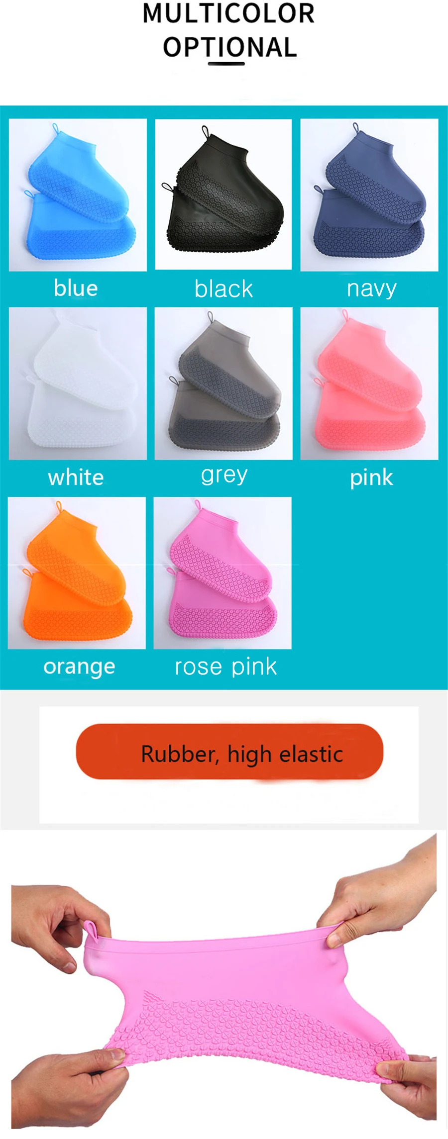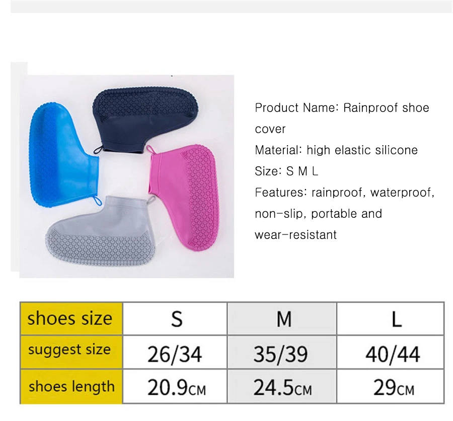 Waterproof Shoe Cover Elasticity Silicone Material Unisex Wear-Resistant Non-Slip Shoes Protectors Rain Boots For Outdoor Hiking