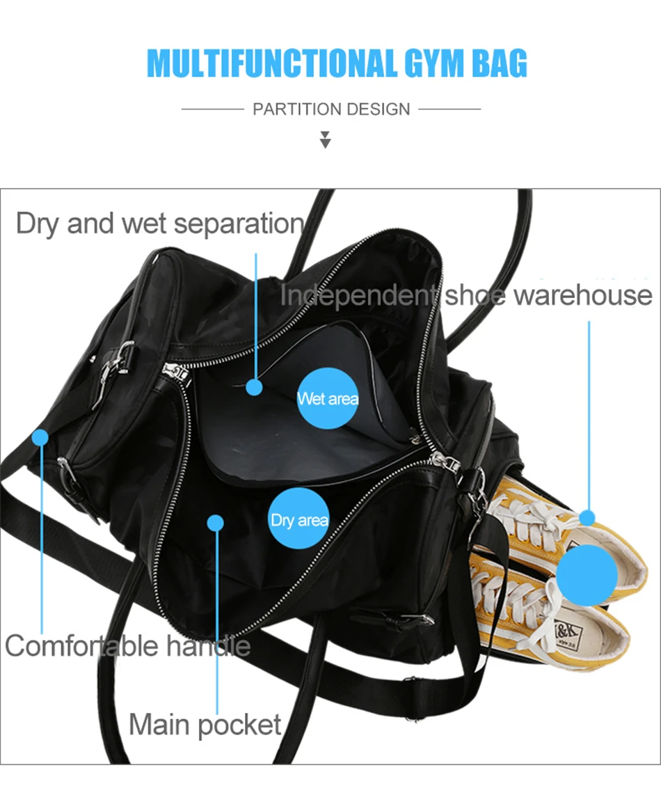 Waterproof Yoga Fitness Gym Bag Women Men Dry Wet Handbags Multifunctional Sport Shoulder Independent Shoes Travel Training Bags