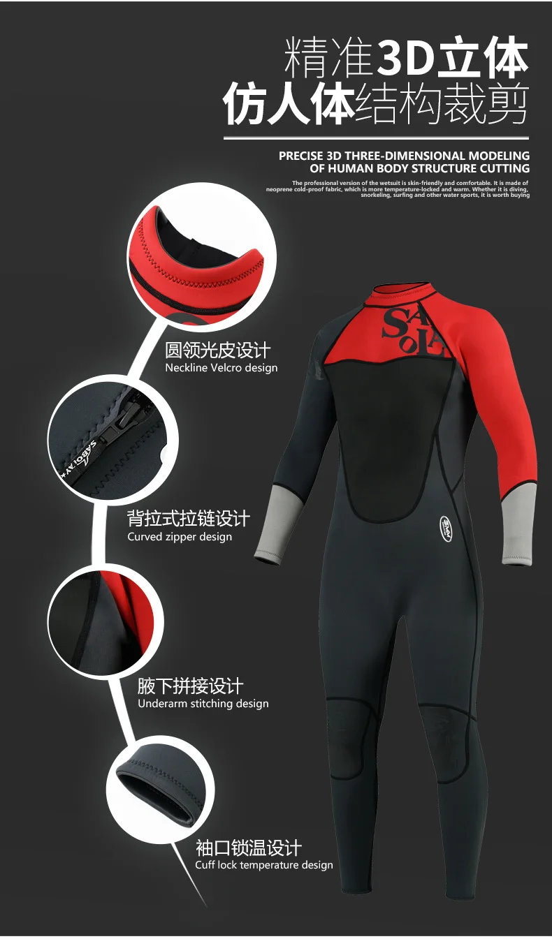 Wetsuit 3MM Neoprene Men One-piece Suit Surfing Sunscreen Full-body Diving Suit Water Sports Scuba Diving Snorkeling Wetsuits