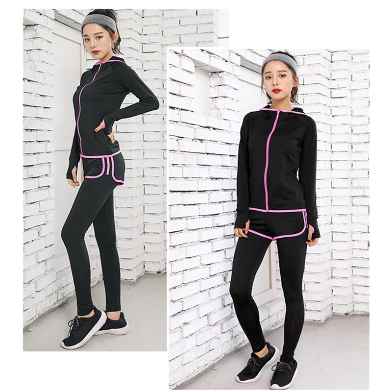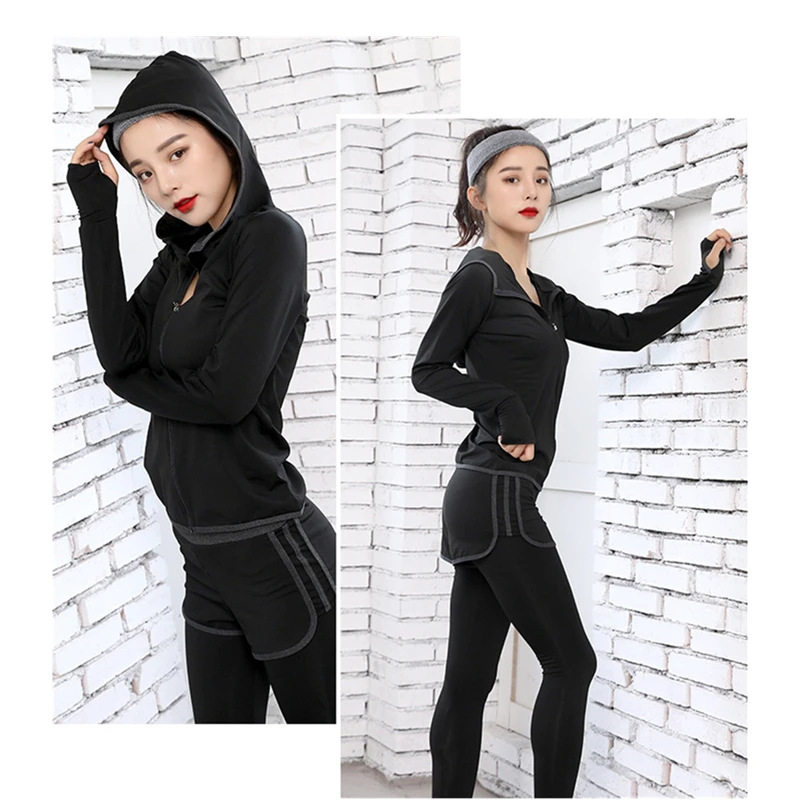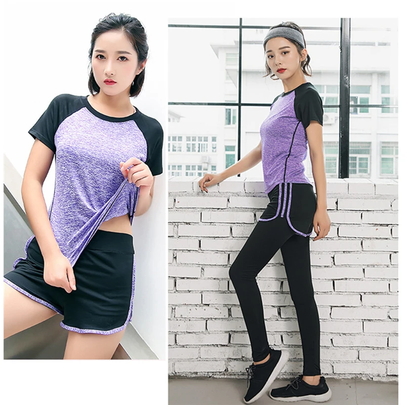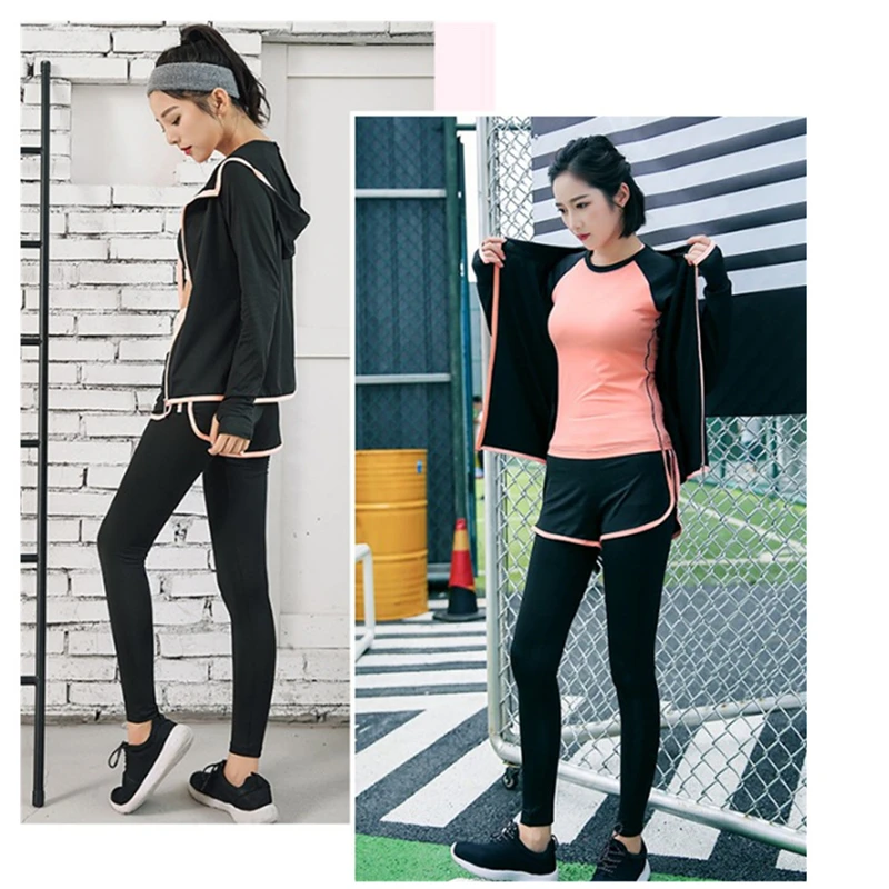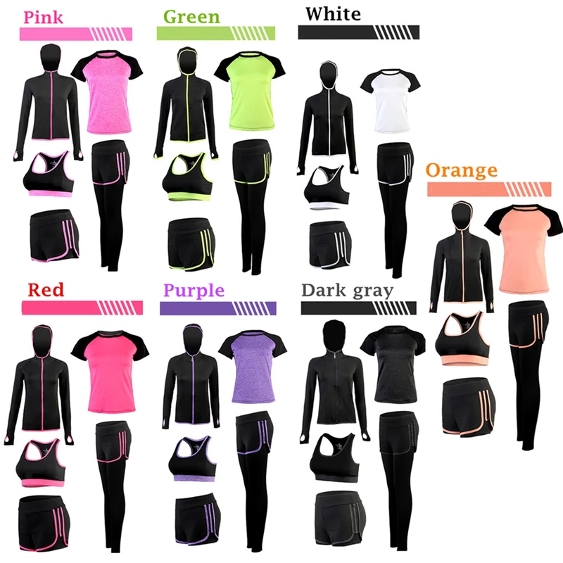 Women Yoga Set Fitness Home 5 Pcs Sports Suits GYM Cloth Yoga Thin Breathable High Waist Running Leggings Workout Pants Shirts