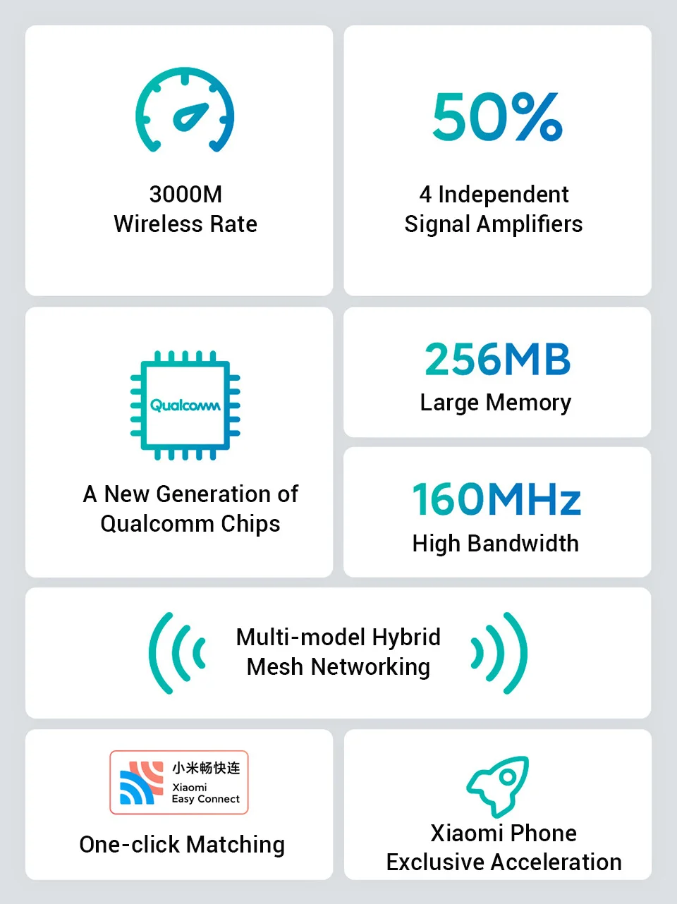 Xiaomi Redmi AX3000 Router Gigabit 2.4G/5.0GHz WiFi 6 Wide Range Signal Dual-core CPU 256MB RAM 4 High-gain Antenna Mesh Router