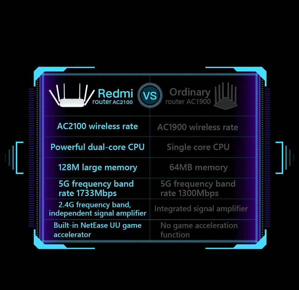 Xiaomi Redmi Router AC2100 2033Mbps 2.4G 5G Dual Band Wifi 128M RAM External Signal Amplifier Repeater PPPOE