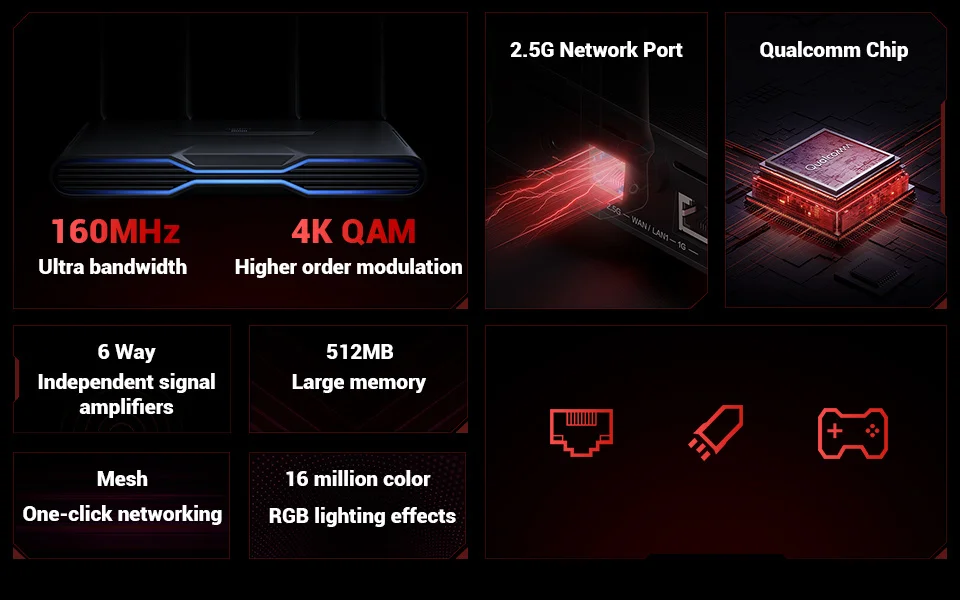 Xiaomi Redmi Router AX5400 Gaming Router WiFi6 512MB Qualcomm IPQ5018 CPU Mesh Repeater External Signal Network Amplifier