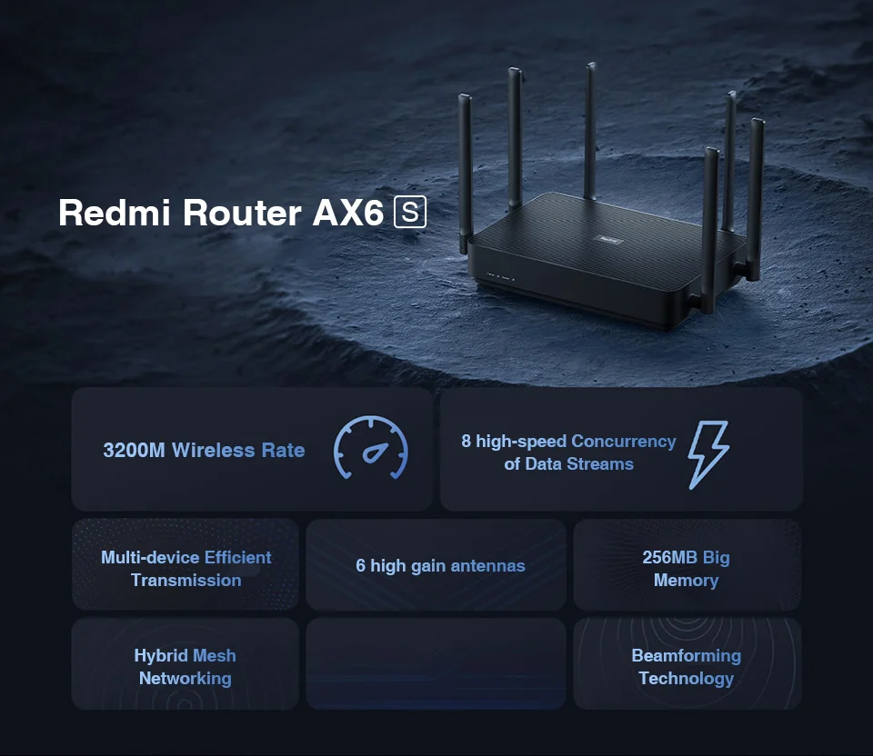 Xiaomi Redmi Router AX6S WiFi 6 3202Mbps 2.4G 5GHz Dual-Band Support OFDMA Mesh Network with 6 Signal Amplifie Antennas Repeater